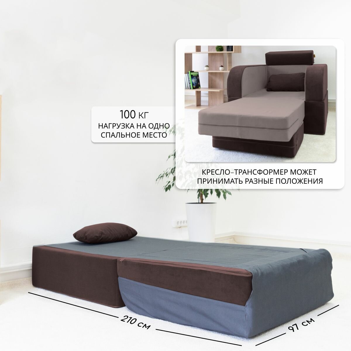 Кресло мешок бескаркасный 90*95 см с матрасом, спальное место 90*230 см, какао 28 865 ₽