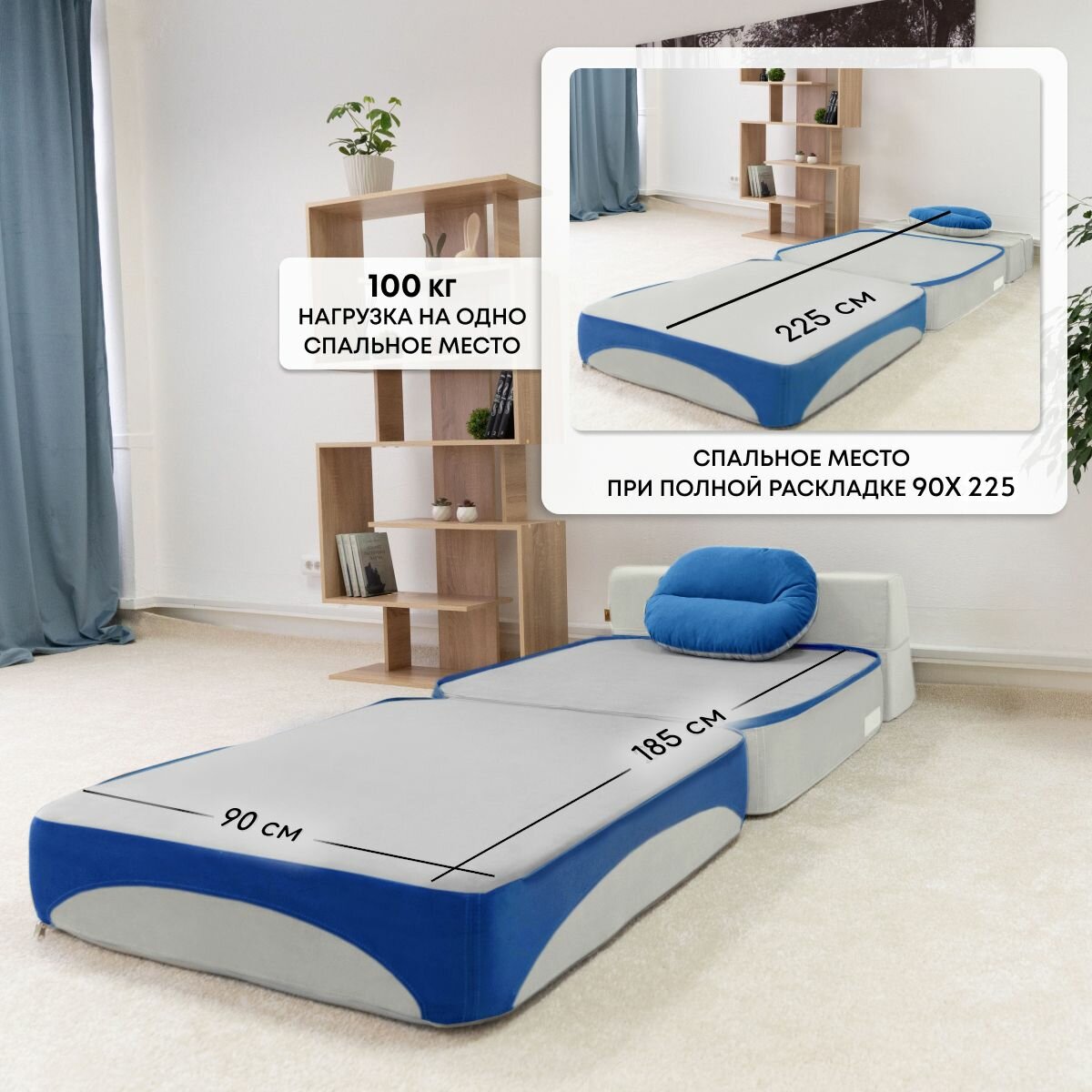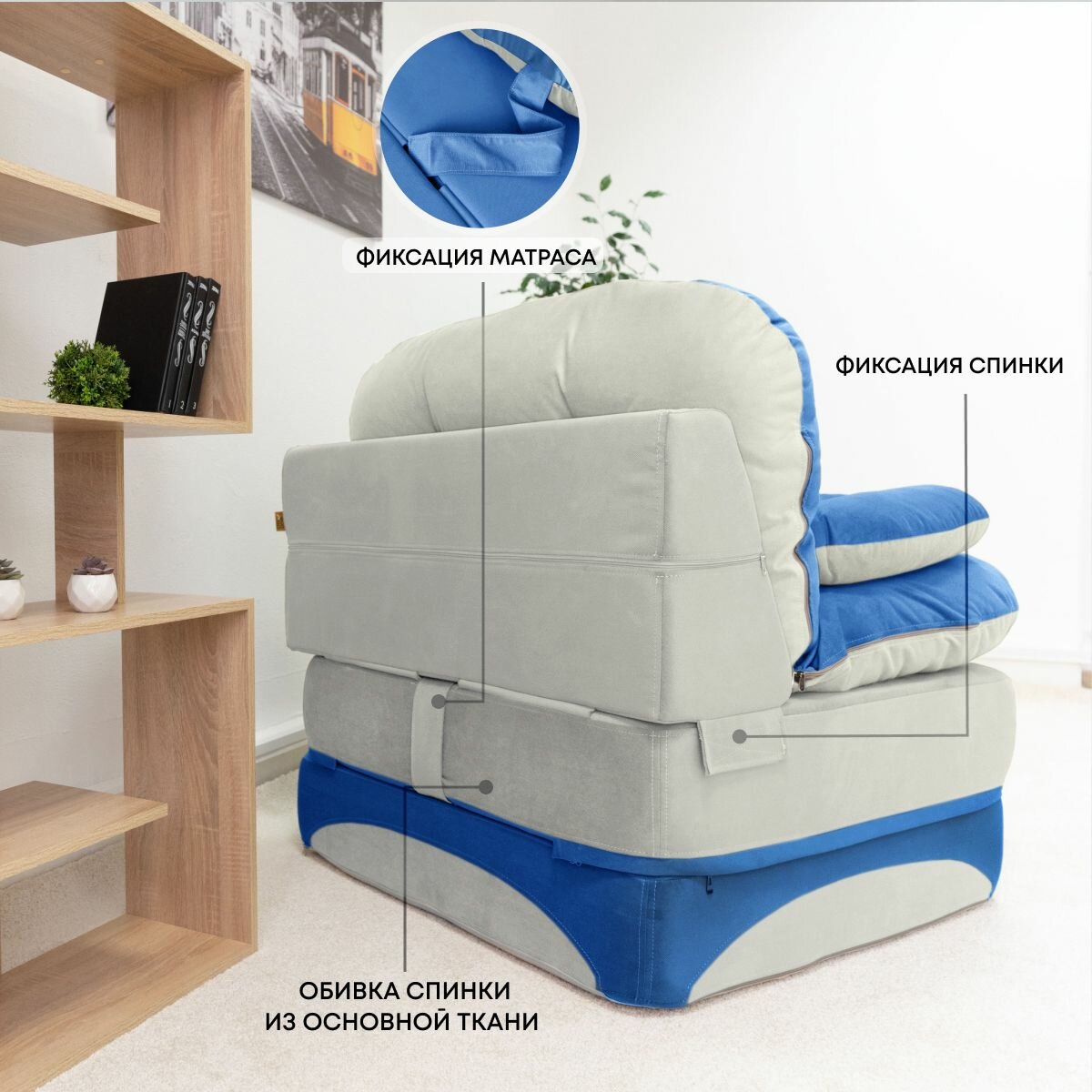 10 цен на Кресло мешок бескаркасный 90*95 см с матрасом, спальное место 90*230 см, синый с серым