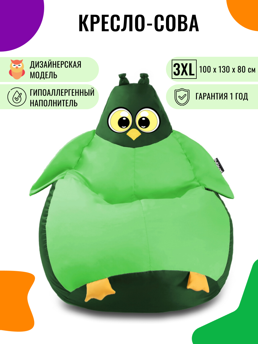 10 цен на Кресло-мешок PUFON , сова , размер 3XL , зеленый/темно-зеленый