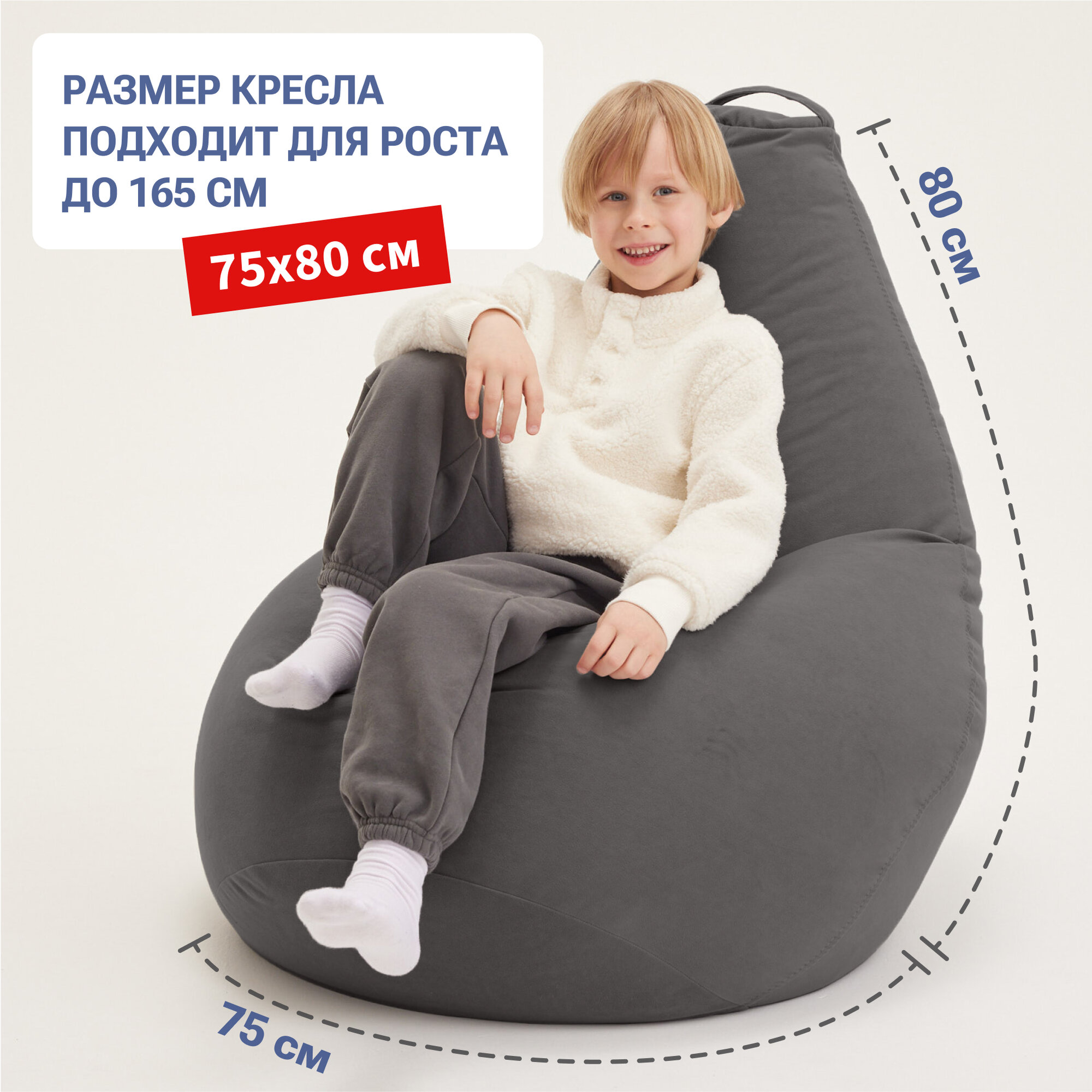 Кресло мешок Bean Joy кресло груша, размер ХXXL, мебельный велюр, антрацит 6 500 ₽