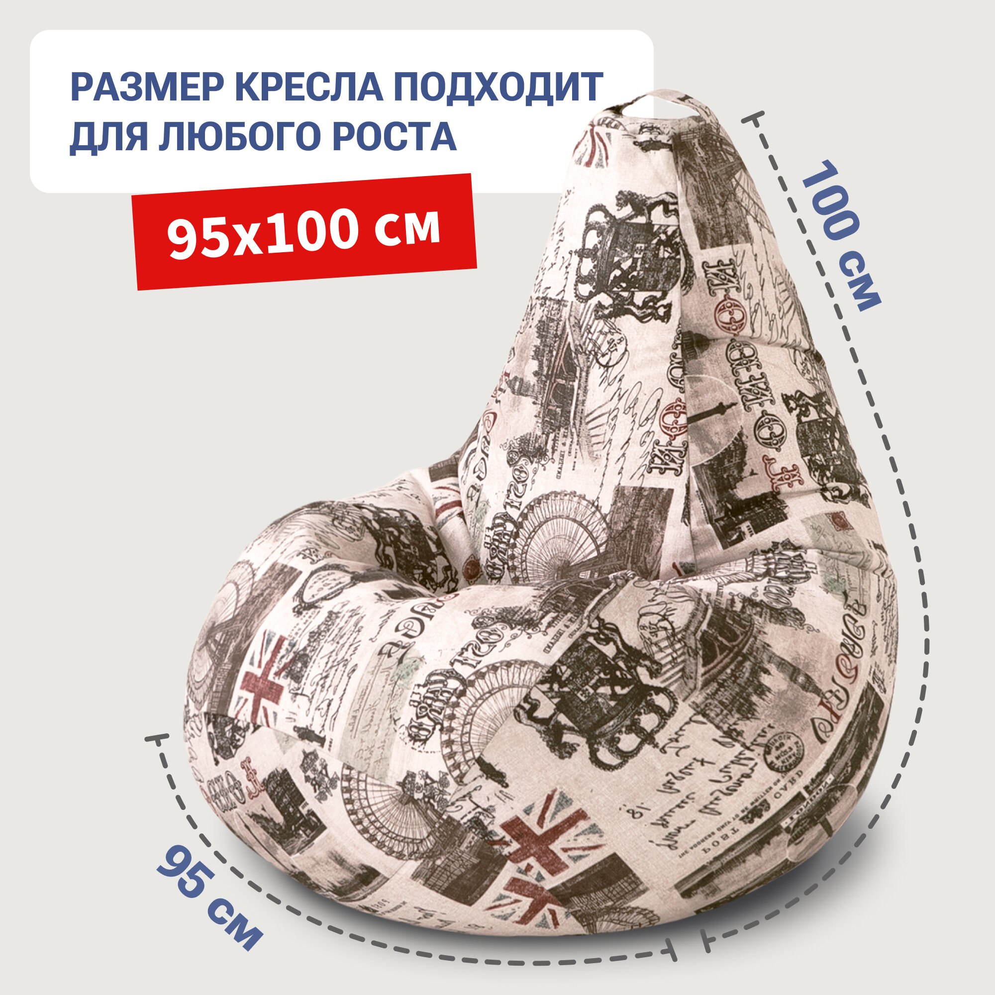 Отзывы на Кресло мешок Bean Joy кресло груша, размер XХХХL, мебельный хлопок, Лондон