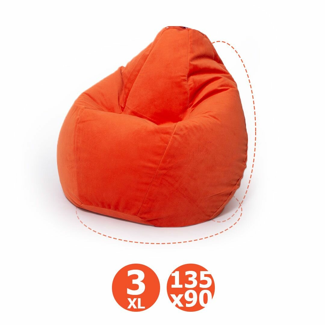 10 цен на Кресло - мешок Груша, большое 135*90 см, велюр - оранжевый