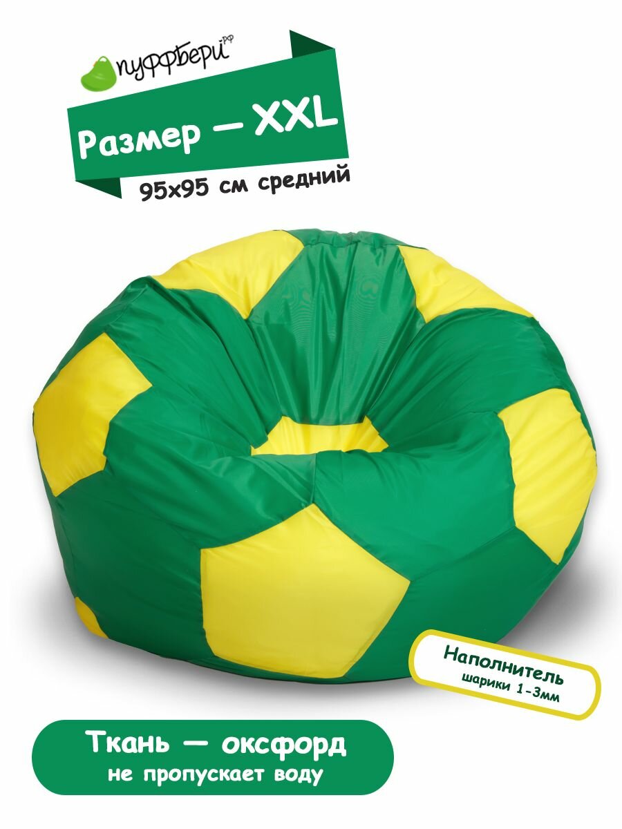 Кресло-мешок Пуффбери «Мяч», размер XXL средний, Оксфорд Зеленый и желтый информация: