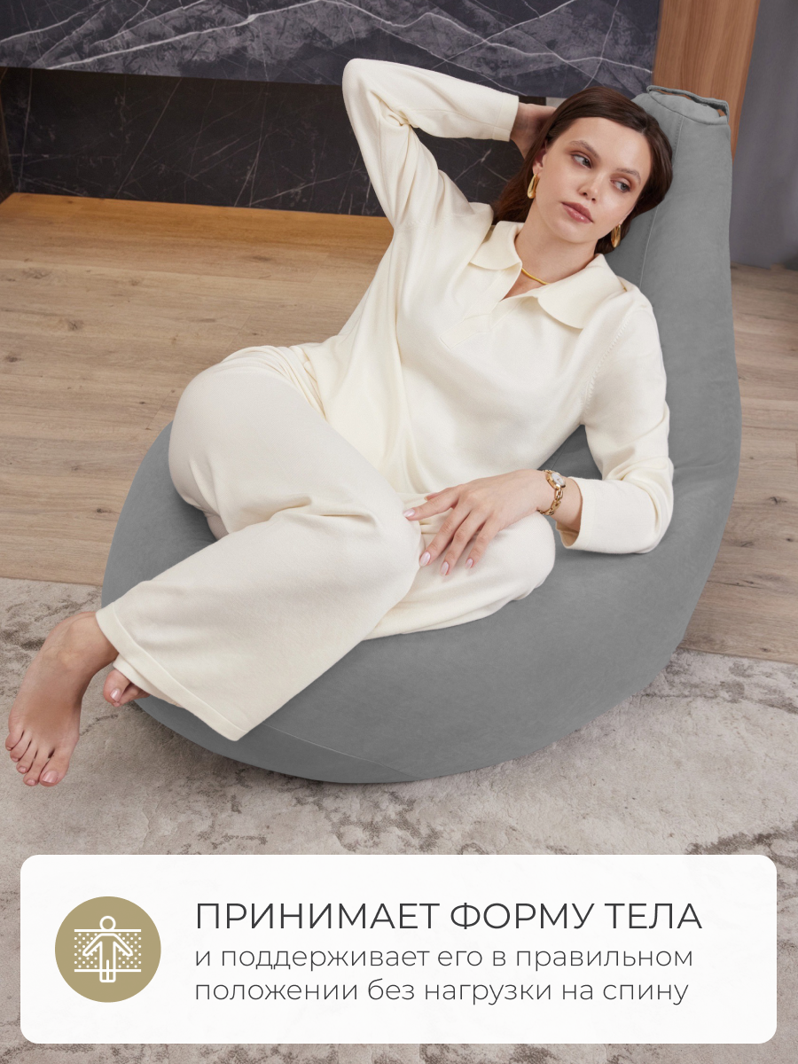 Кресло мешок Laavi Home кресло груша, размер ХXL, мебельный велюр, антрацит 5 900 ₽