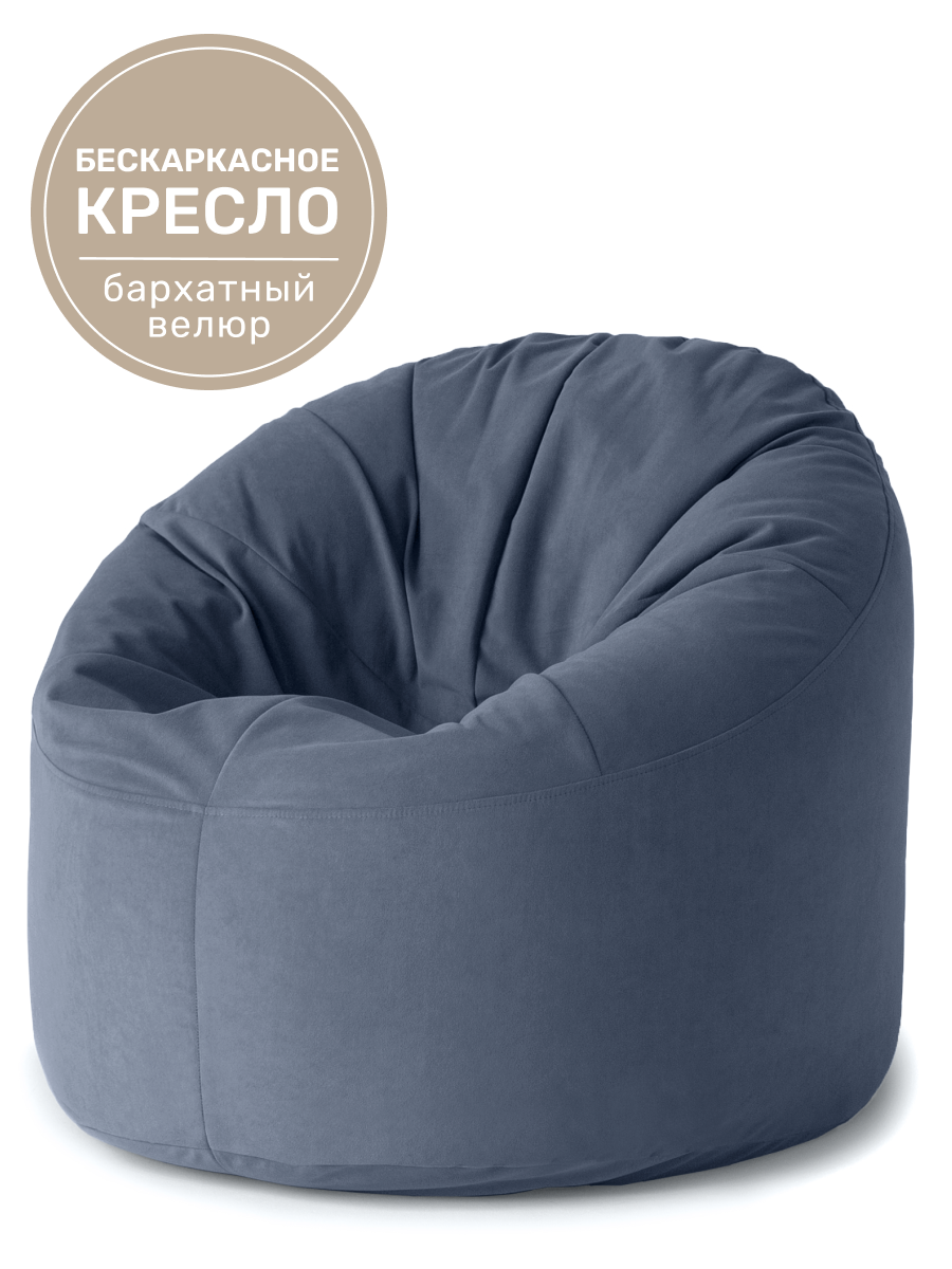 Мир Пуффов Кресло-мешок «Груша» Велюр синий XXXL, съемный чехол на молнии