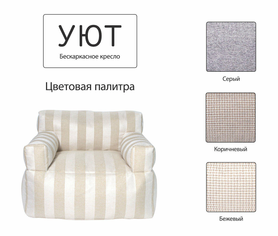 Бескаркасное кресло "Уют" полоса бежевая информация: