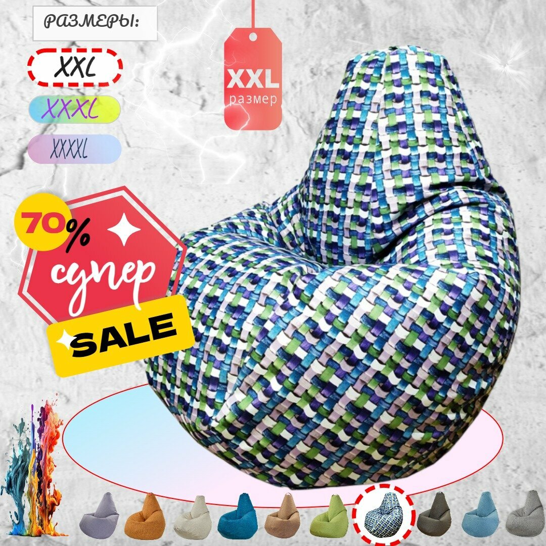 Кресло-мешок Груша рогожка, разноцветный принт (размер XXXL), PuffMebel 6 480 ₽