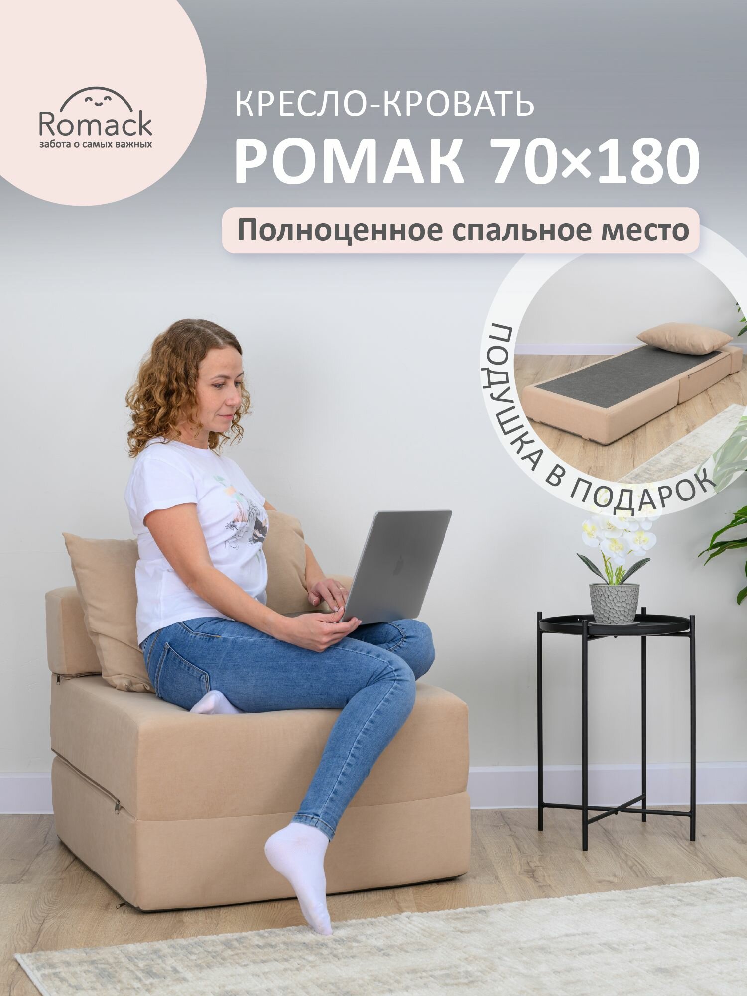 Отзывы на Кресло-кровать, пуфик Romack, 70x80x60, съемные чехлы из велюра, латте