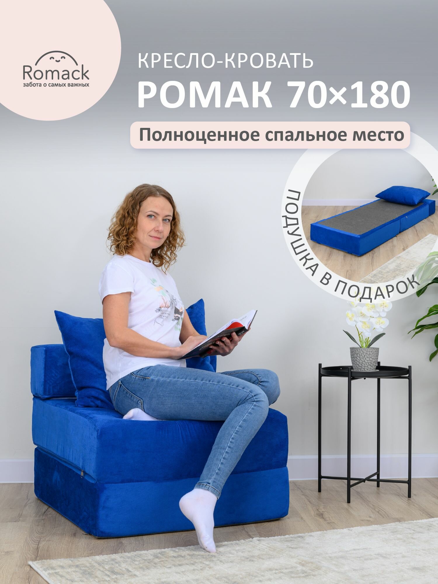 Отзывы на Кресло-кровать, пуфик Romack, 70x80x60, съемные чехлы из велюра, синий
