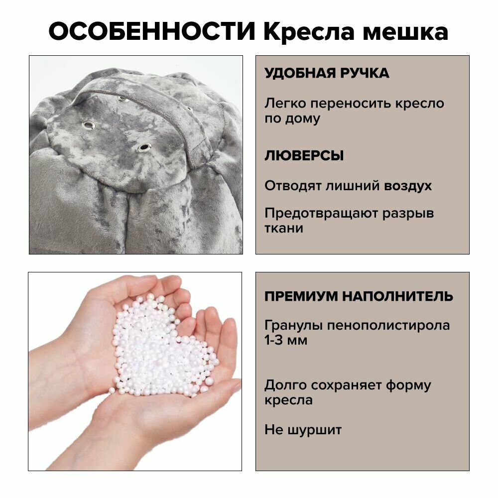 Кресло-мешок Myakish "Беверли", шенилл, наполнитель пенополистирол, цвет серый, XL