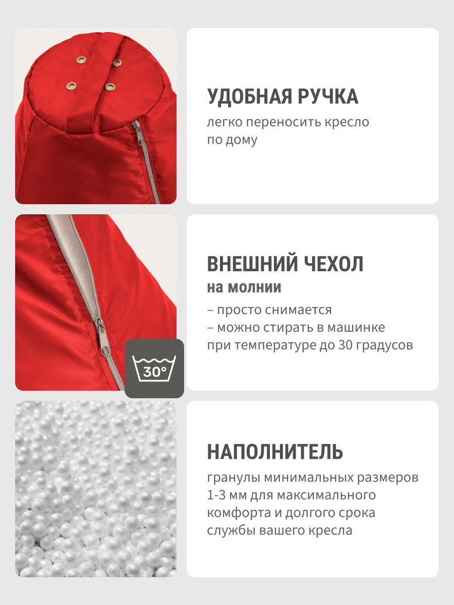 10 цен на Кресло мешок MyPuff кресло груша, размер ХXXXХL Мега, оксфорд, красный
