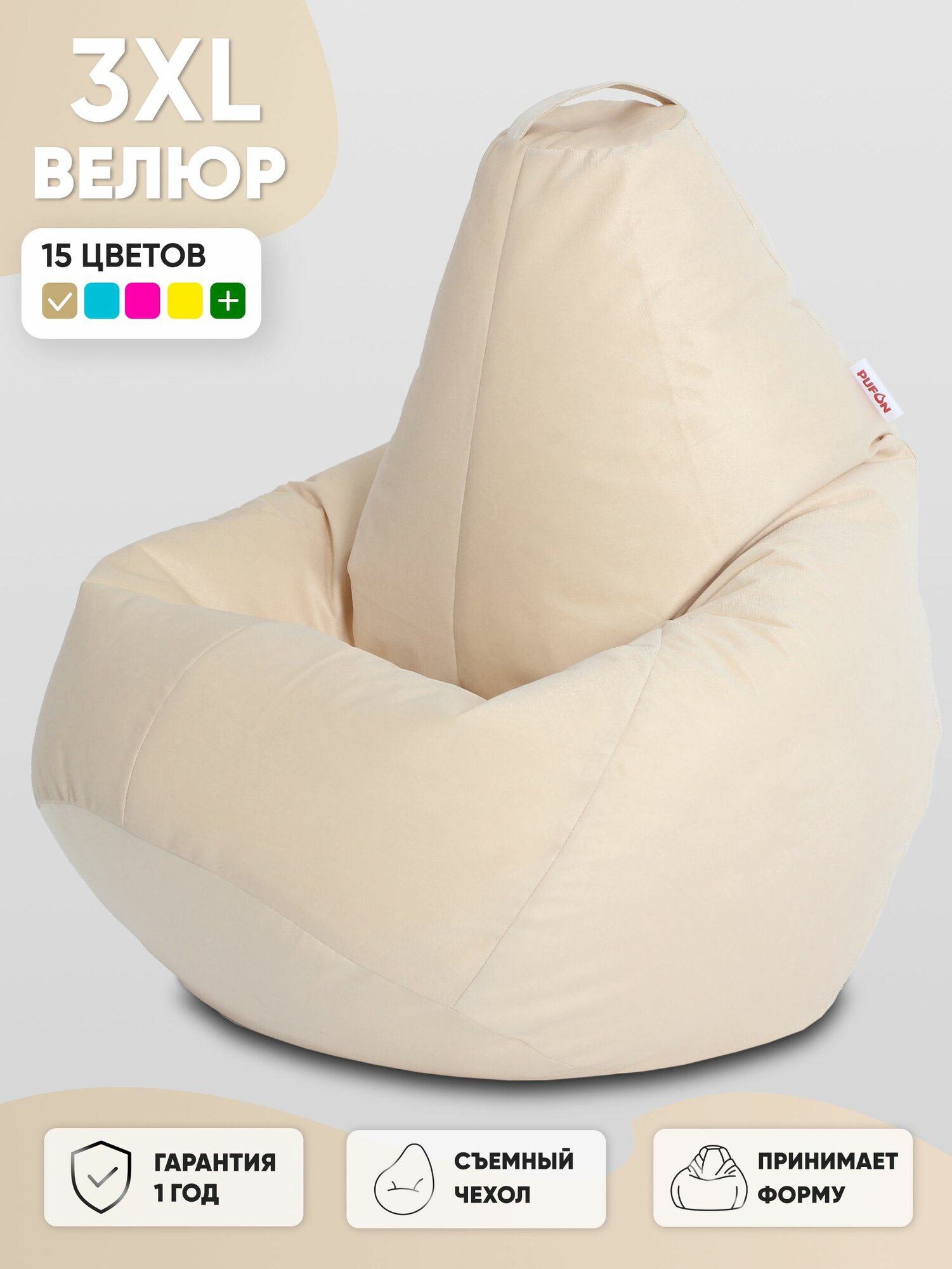 Отзывы на Кресло-мешок FENJOYS груша размер 3XL, молочный, материал велюр