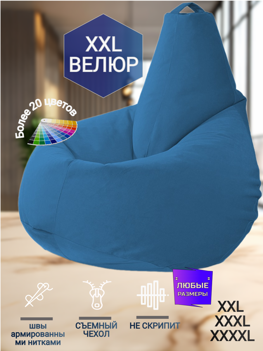 Отзывы на Кресло-мешок Груша велюр, цвет лазурный (размер XXL) PuffMebel