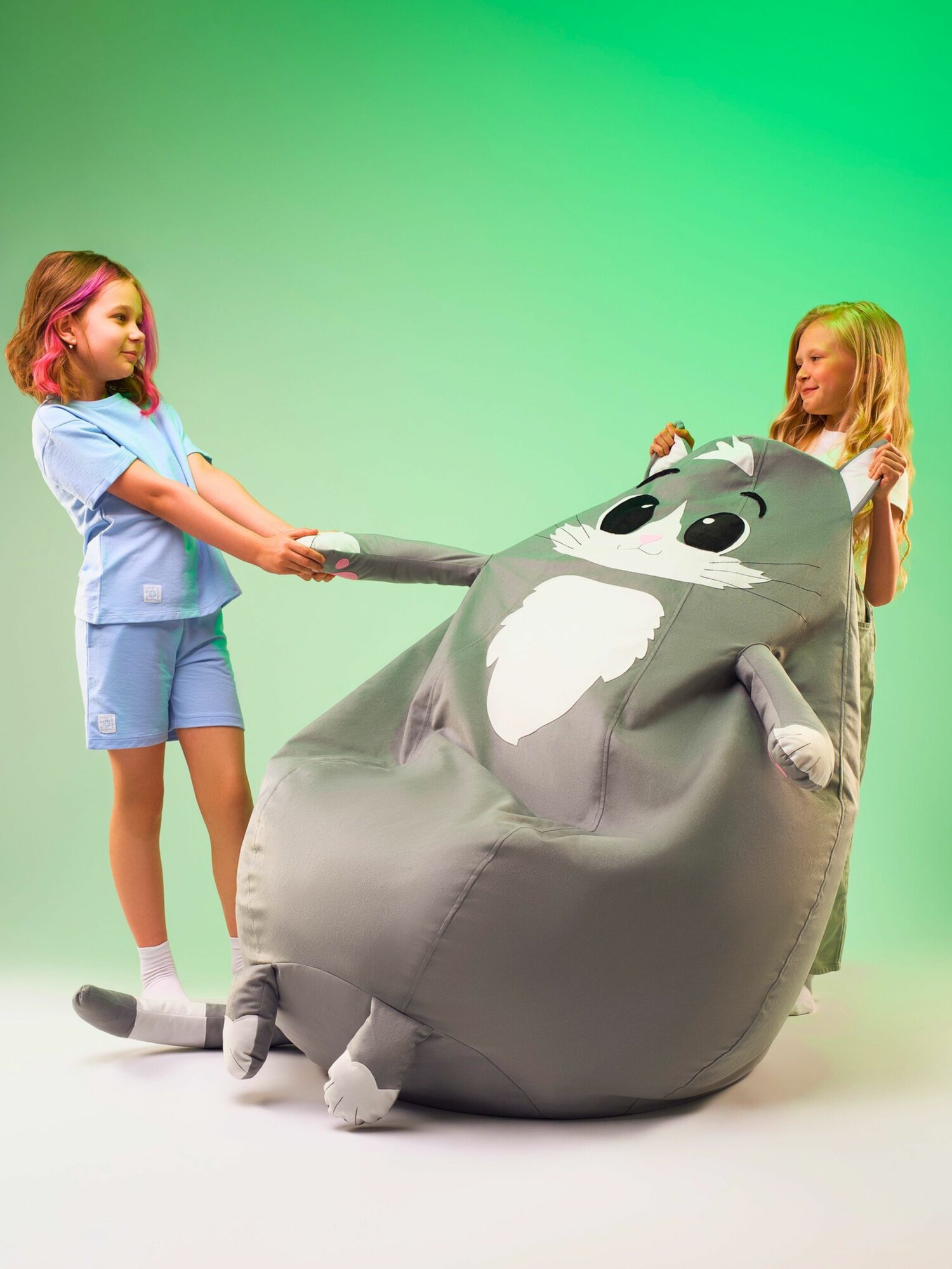 Кресло-мешок игрушка Кот 5XL без наполнителя, Комплект чехлов из велюра / спанбонда, съёмный, корзина для игрушек XXXXXL 5 990 ₽