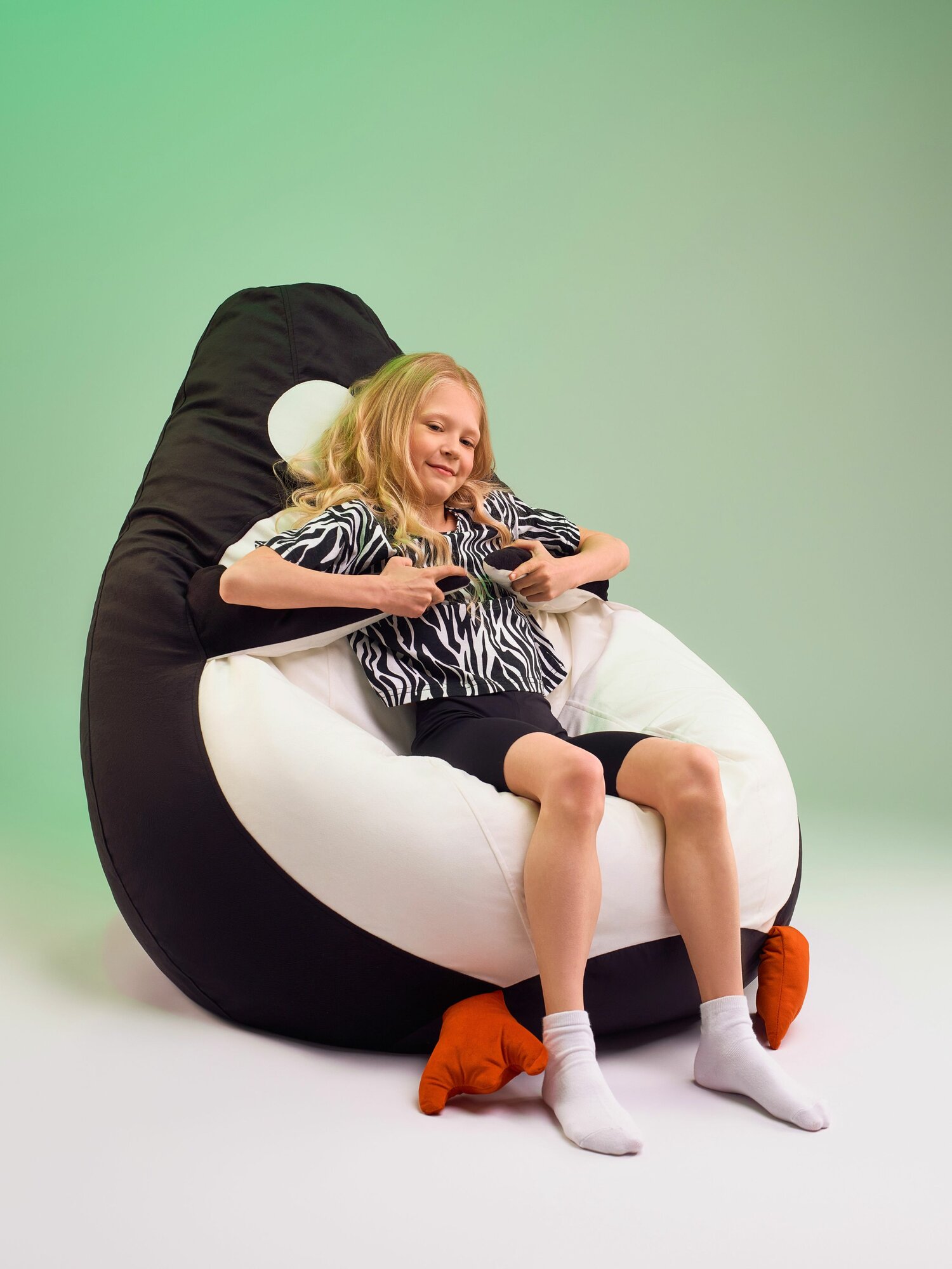 Кресло-мешок игрушка Пингвин 4XL без наполнителя, Комплект чехлов из мебельного велюра / спанбонда, съемный, груша XXXXL информация: