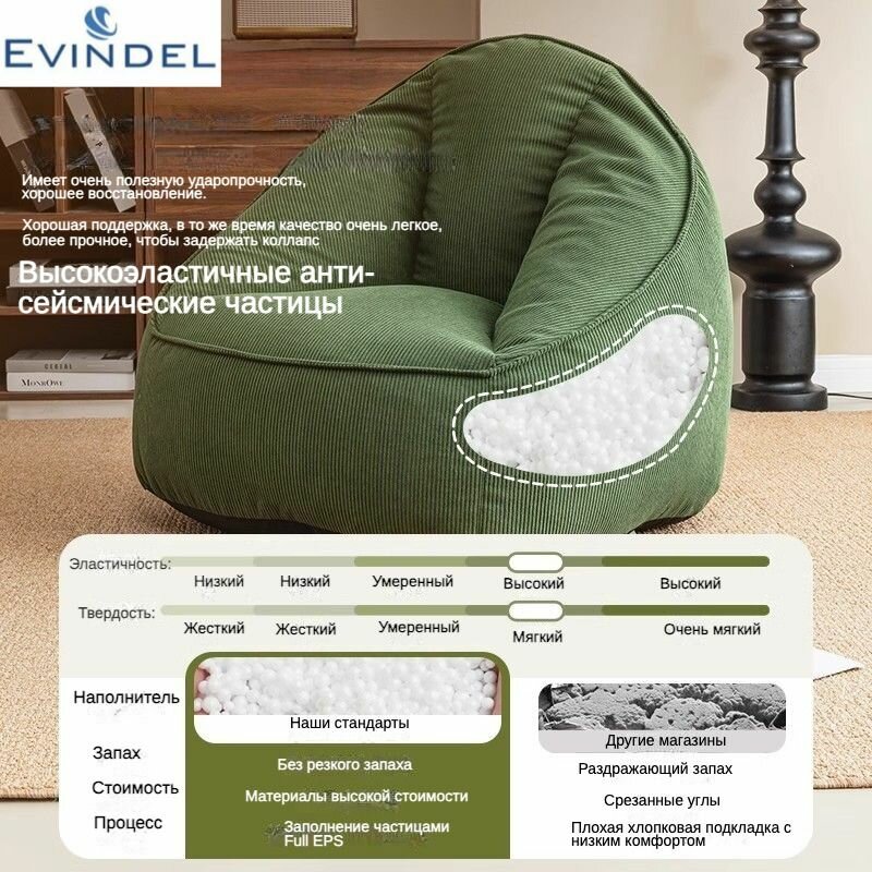 Отзывы на Кресло-мешок EVINDEL, большой размер, вельветовый чехол, оранжевое
