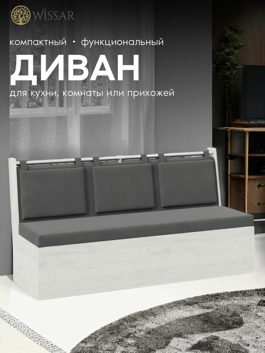 10 цен на Диван на кухню прямой, кухонный диван с ящиком "Роденго" - дуб крафт белый/ТК рогожка серая