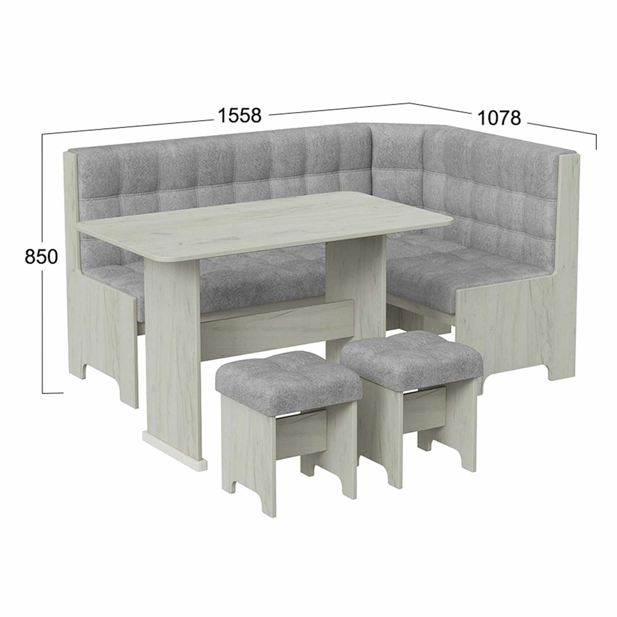 10 цен на Кухонный уголок Флорида (Дуб крафт белый/Микровелюр Wellmart Silver)