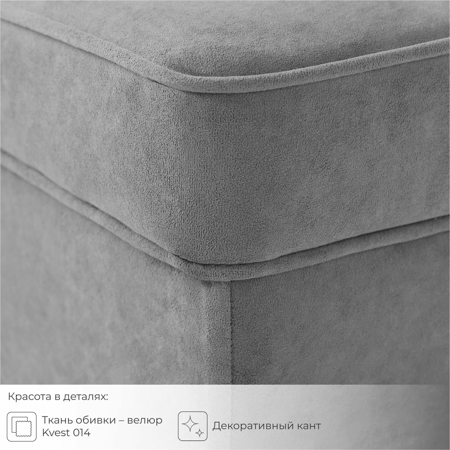 Кухонный диван, уголок Лакки с ящиком для хранения, 100х47х81.5 см, Серый, велюр