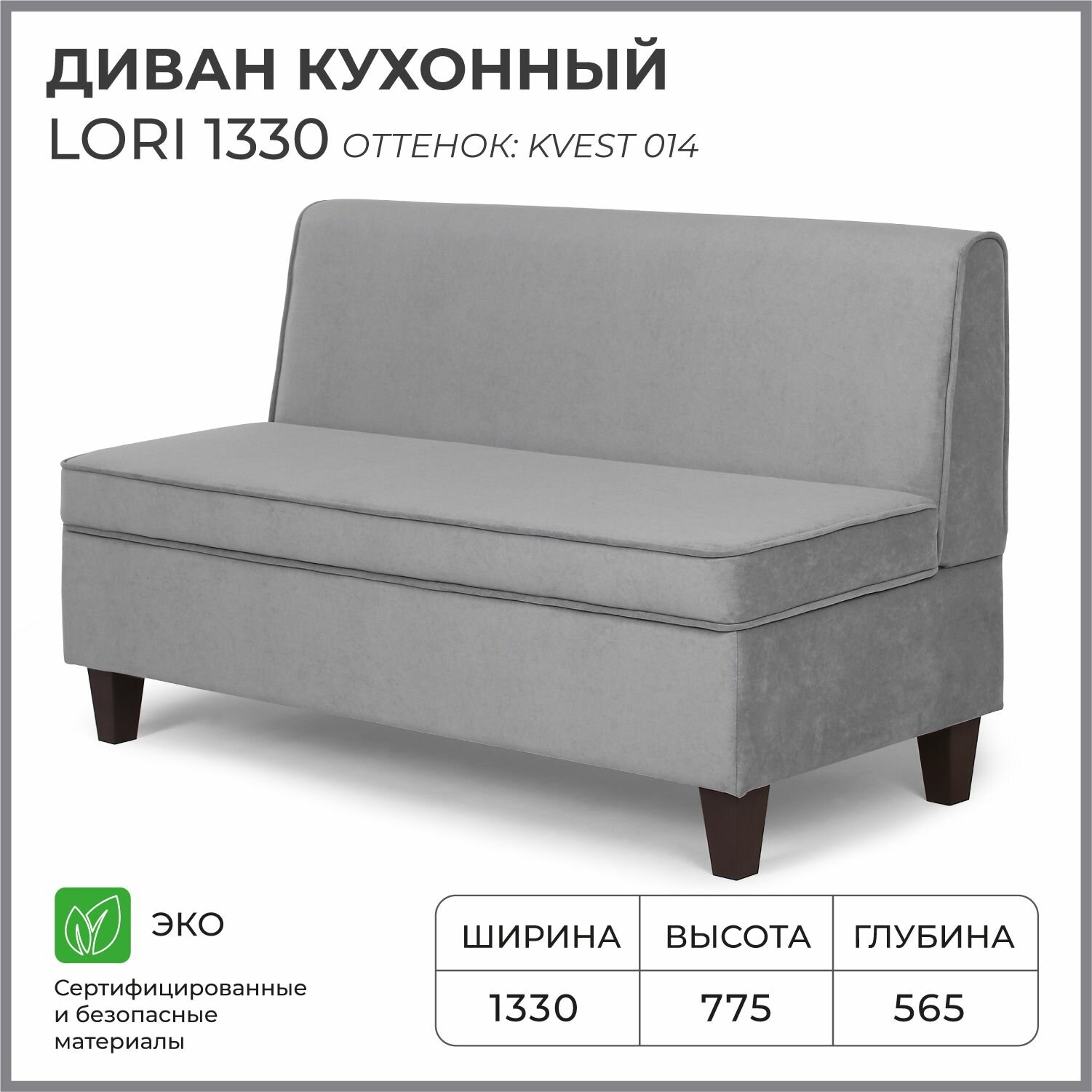 Диван на кухню, прямой, на балкон, в прихожую NORTA Lori 1330х565х775 Kvest 014 велюр информация: