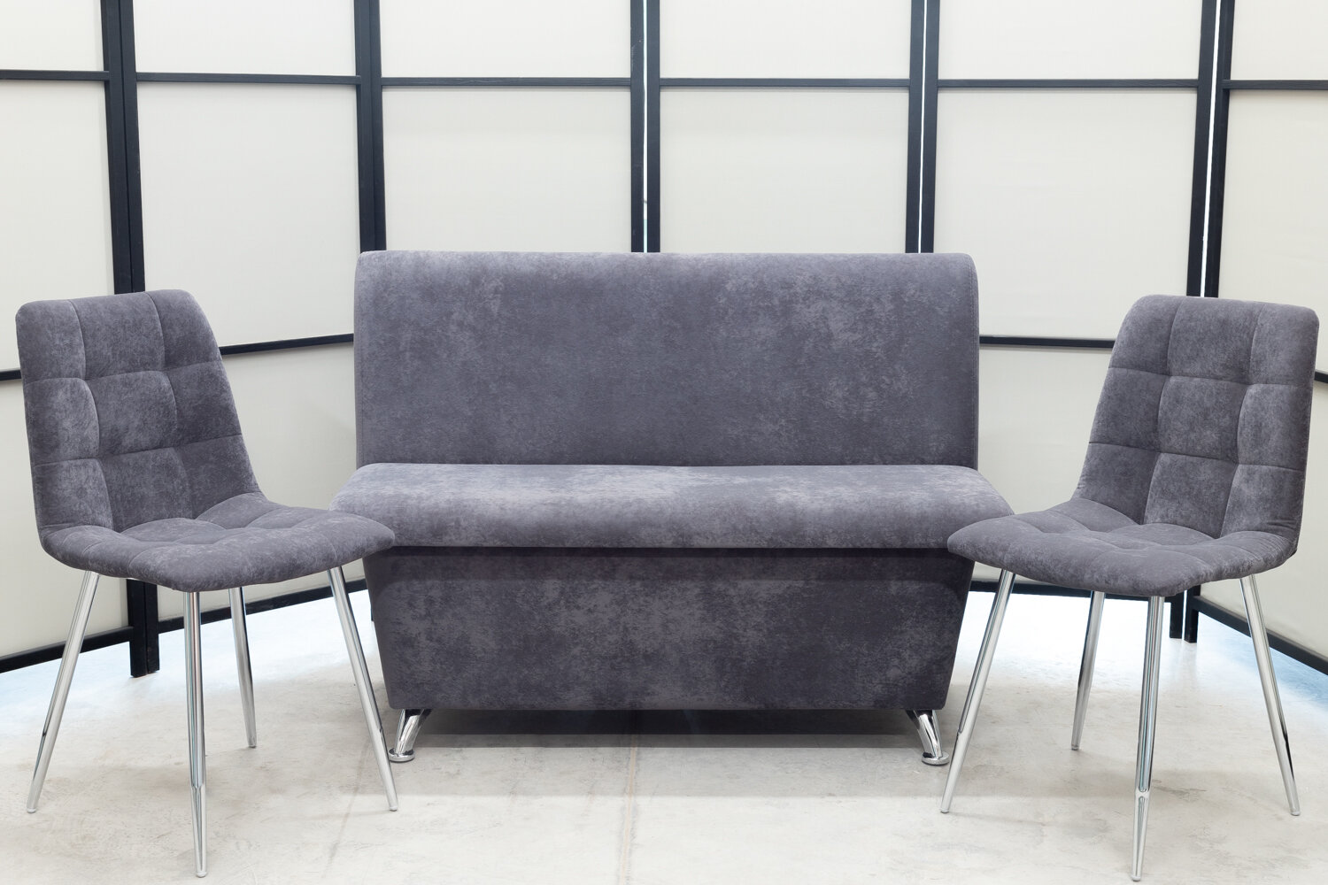Кухонный диван Граф с 2-мя стульями, 120х56 см, обивка моющаяся, антивандальная, антикоготь, цвет - графит. информация: