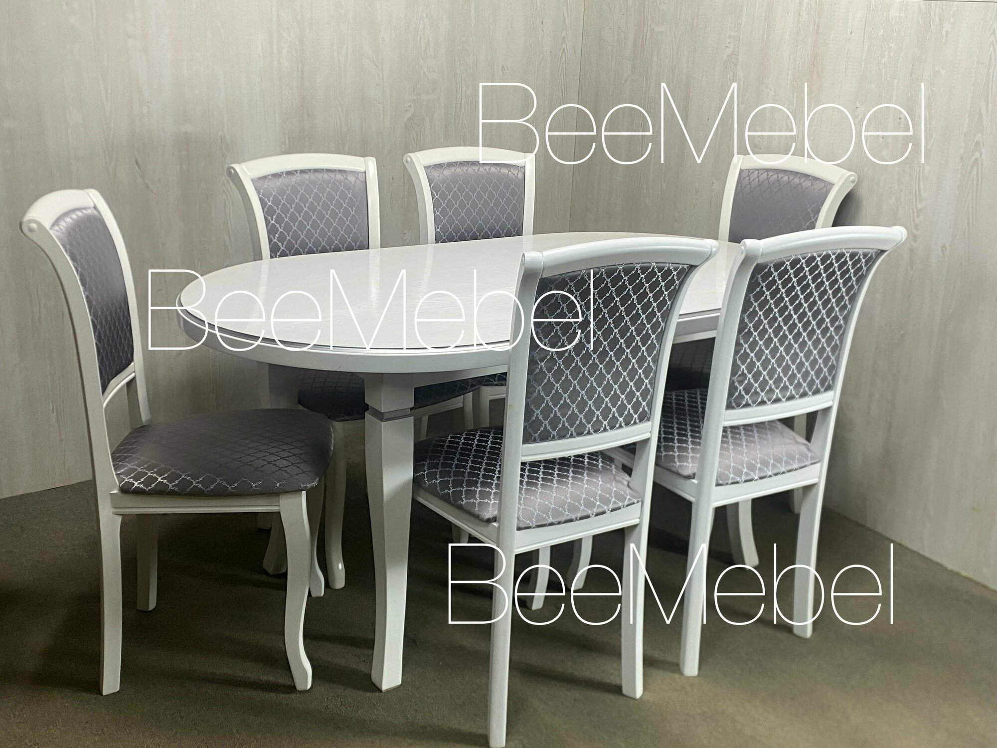 Обеденная группа, стол овальный на двух ножках 160 и 6 стульев