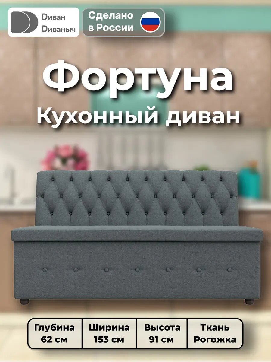 Отзывы на Диван кухонный прямой Фортуна с каретной стяжкой с ящиком для хранения, Рогожка