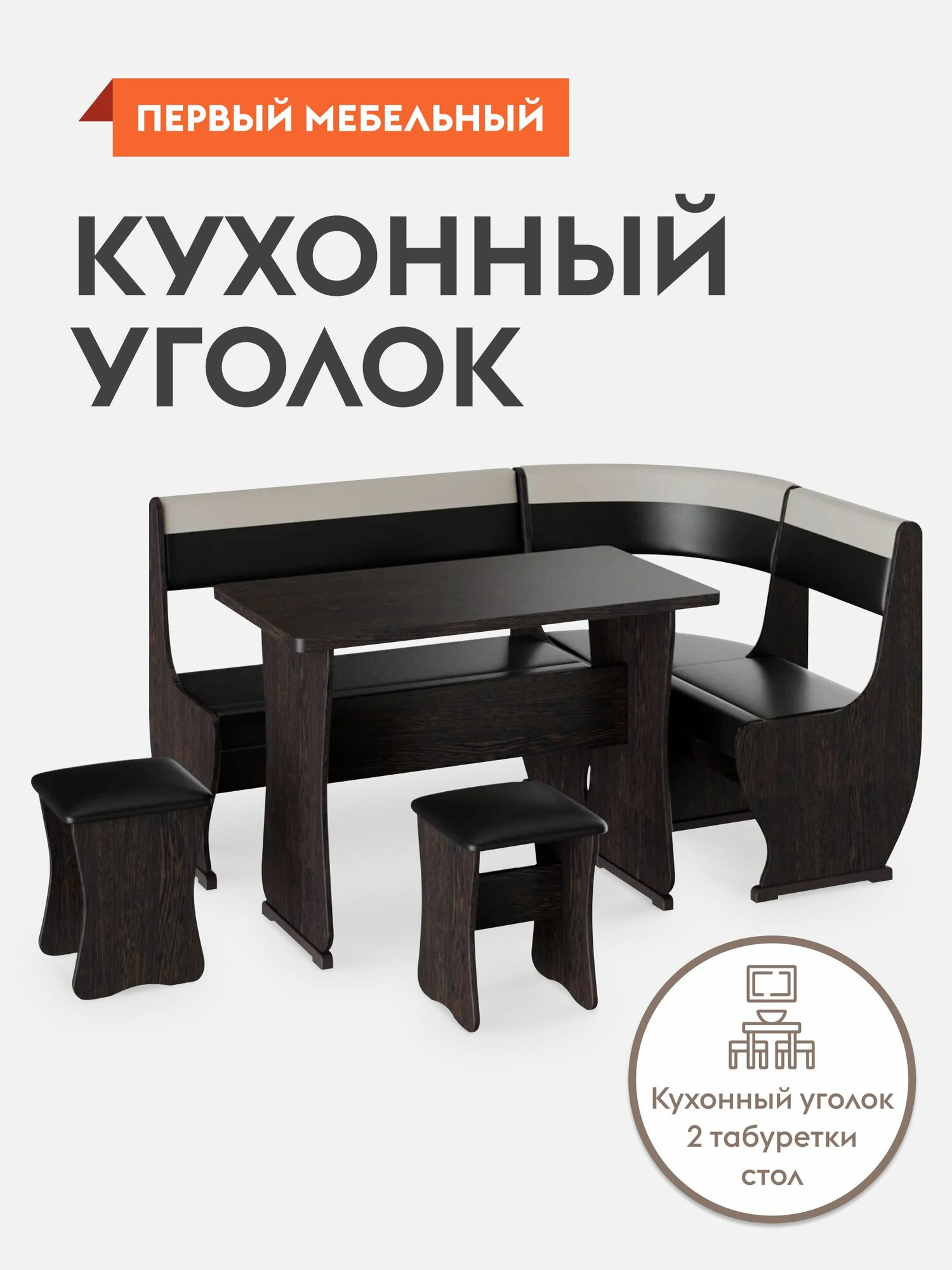 Отзывы на Кухонный диван, уголок Альянс 1 с большим столом, с табуретами, Венге / Шоколад, бежевый, экокожа
