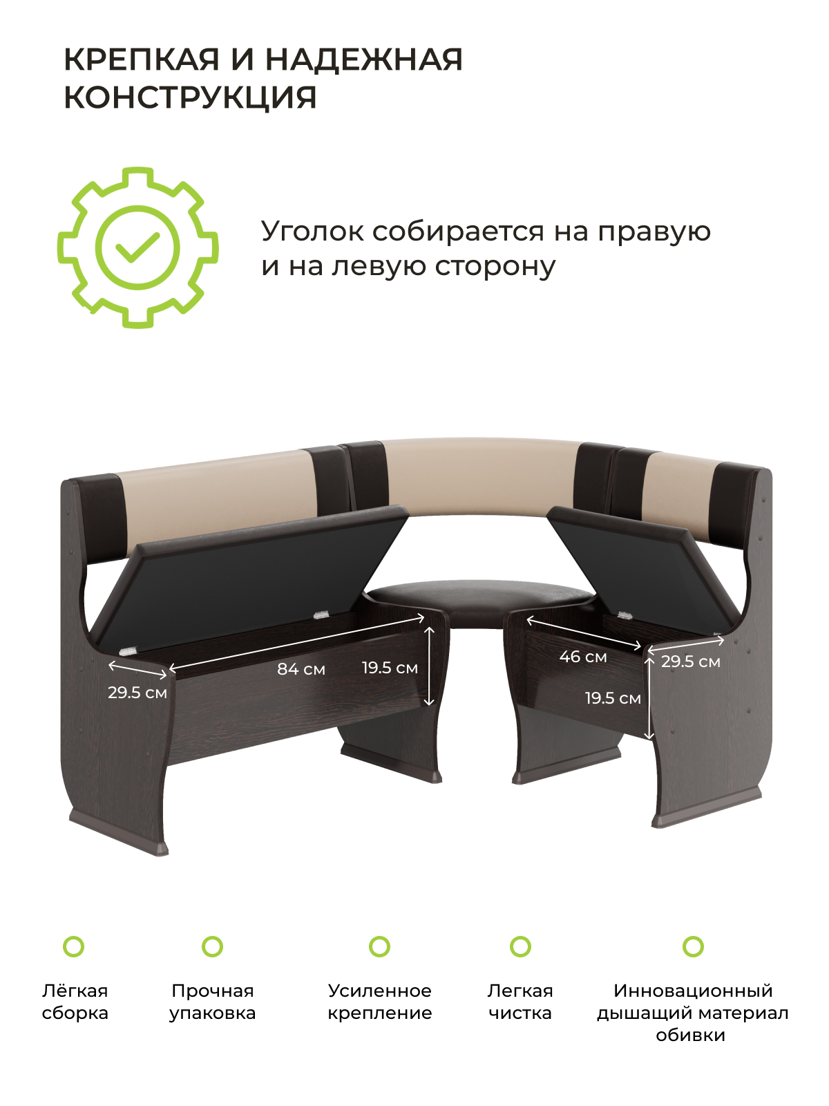Отзывы на Скамья угловая BONMEBEL, Фиеро тип 1, Венге/ КЗ коричневый-бежевый, 107х140х83 кухонный уголок, кухонный диван