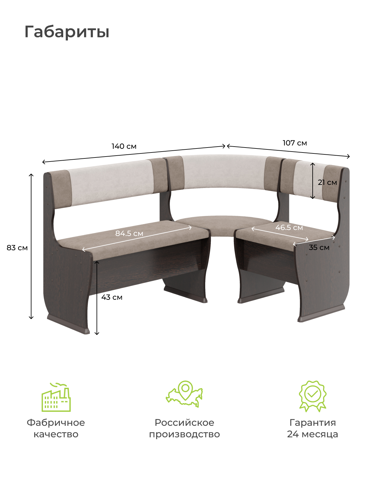 Скамья угловая BONMEBELФиеро тип 1, Венге /ТК коричневый koriza-бежевый moonlight, 107х140х83 кухонный уголок информация: