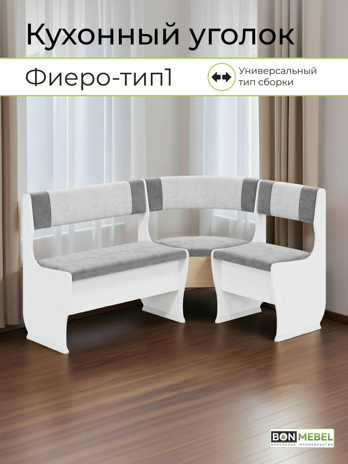Отзывы на Скамья угловая BONMEBEL, Фиеро тип 1, Белый/ТК серый mocco-тёмно серый graphite,107х140х83 кухонный уголок, диван
