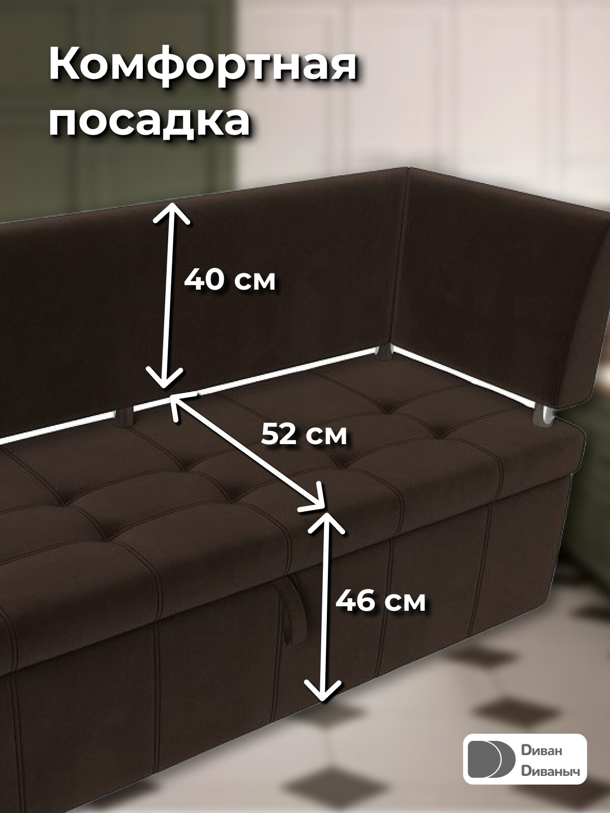 Диван кухонный прямой Лотос со спальным местом 100х170 см, угол справа, Микровельвет коричневый информация: