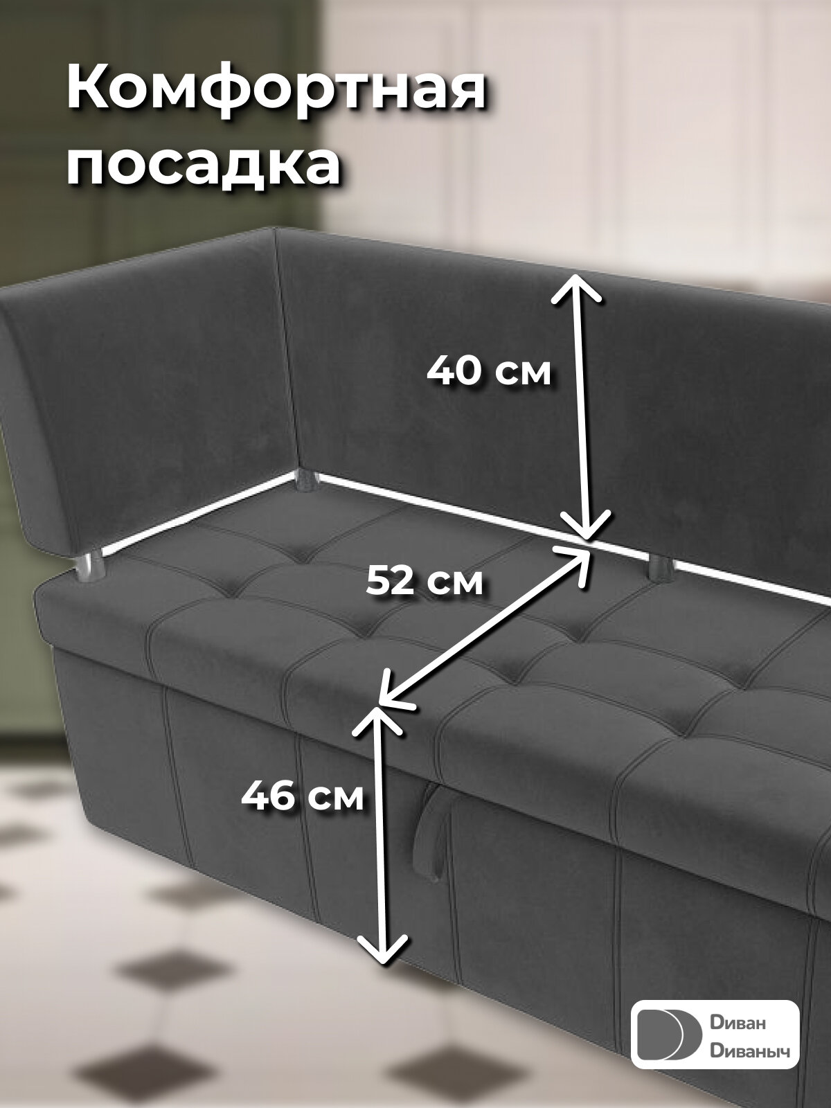 Диван кухонный прямой Лотос со спальным местом 100х170 см, угол справа, Велюр серый 51 999 ₽