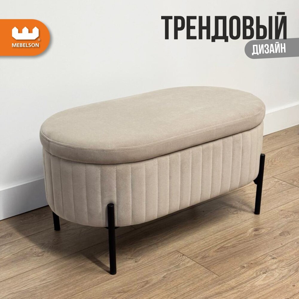 10 цен на Мягкий пуф "Винни" с ящиком для хранения, цвет Капучино (велюр), 80*43*40 см, MEBELSON