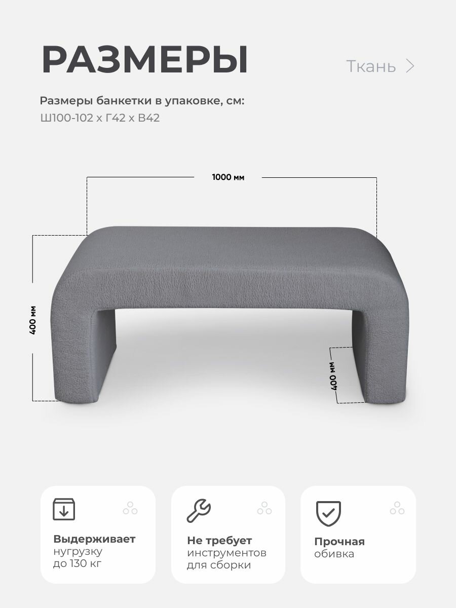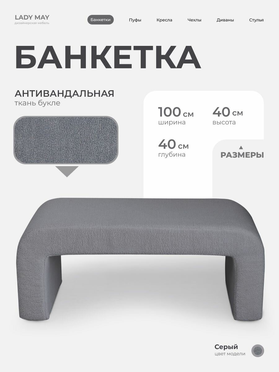 Пуфик дизайнерский в прихожую, для туалетного столика LADY MAY Банкетка 100 х 40 х 40 см, Букле информация: