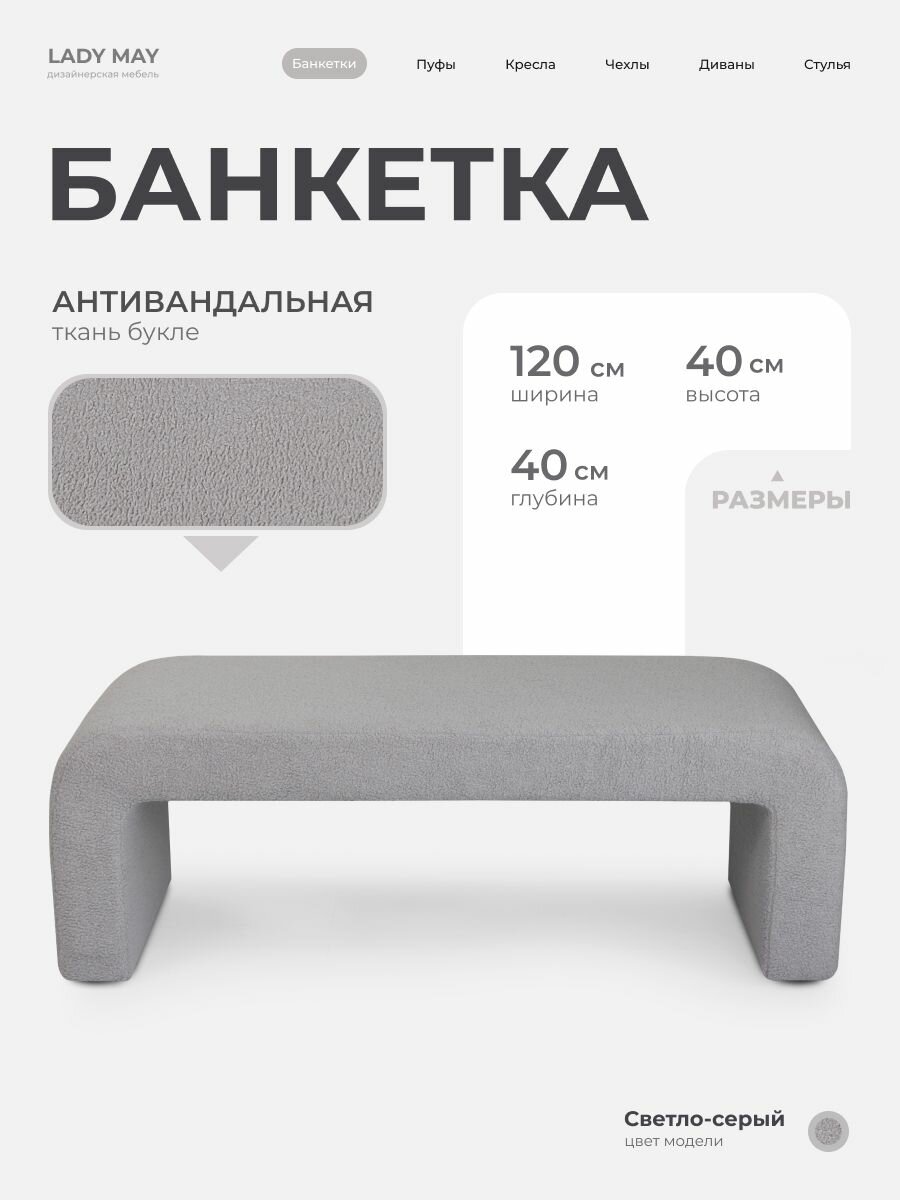 10 цен на Пуфик дизайнерский в прихожую, для туалетного столика LADY MAY Банкетка 120 х 40 х 40 см, Букле