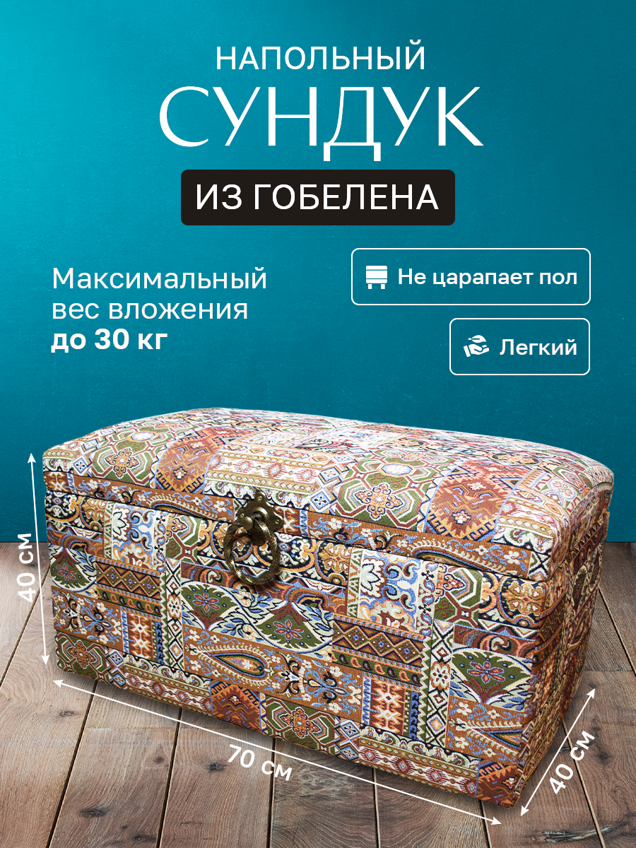 Банкетка DECORTA "Pititi", для прихожей, с ящиком, мебельный гобелен, 62х34х45 см