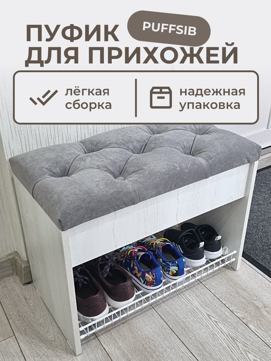 Отзывы на Пуфик в прихожую с обувницей и ящиком для хранения вещей Puffsib А-61, бетон/серый