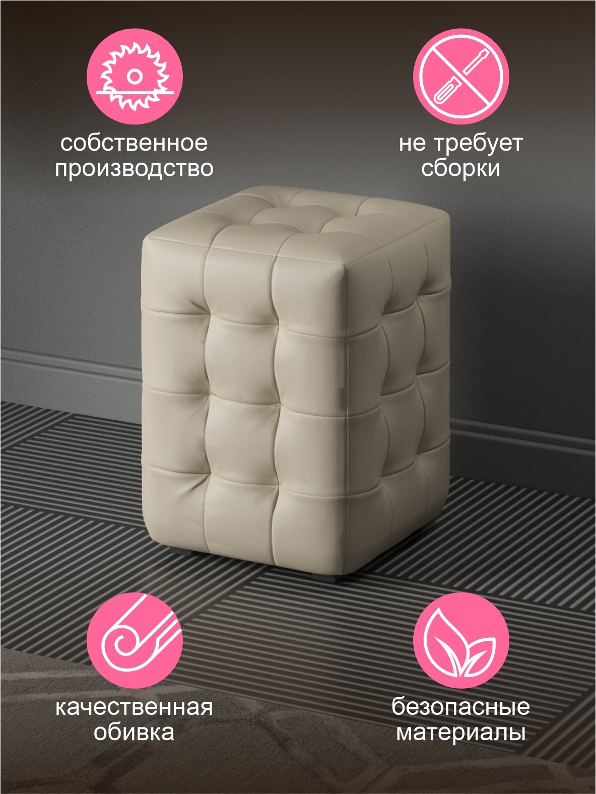 10 цен на Пуфик, Пуфик в прихожую, Экокожа бежевая, 32х32х41