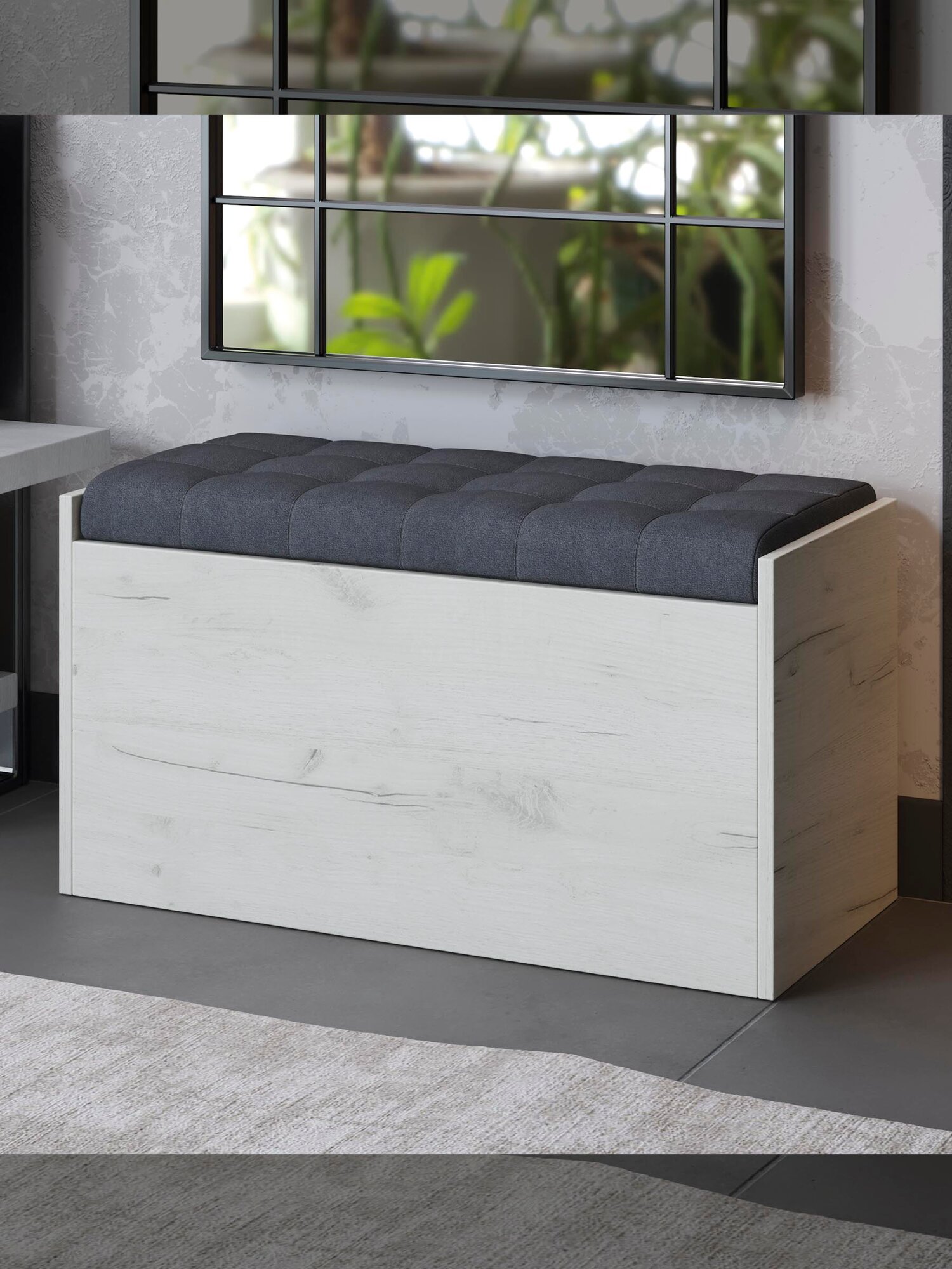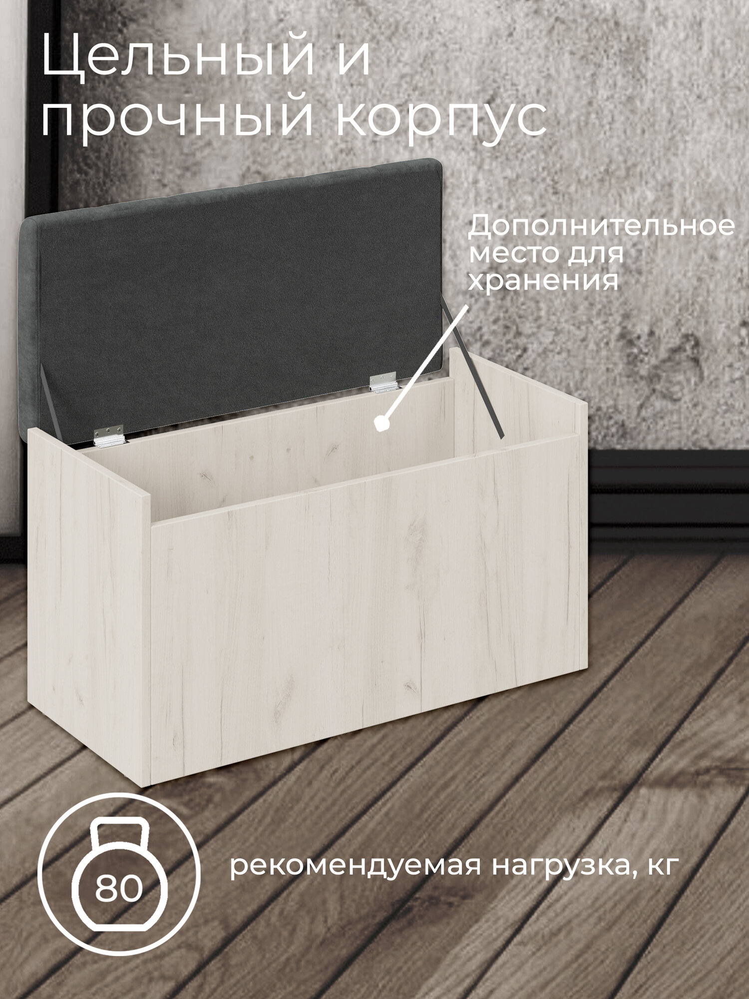 Пуф с крышкой, прямоугольный, ТриЯ "Форест", дуб крафт белый/серый информация: