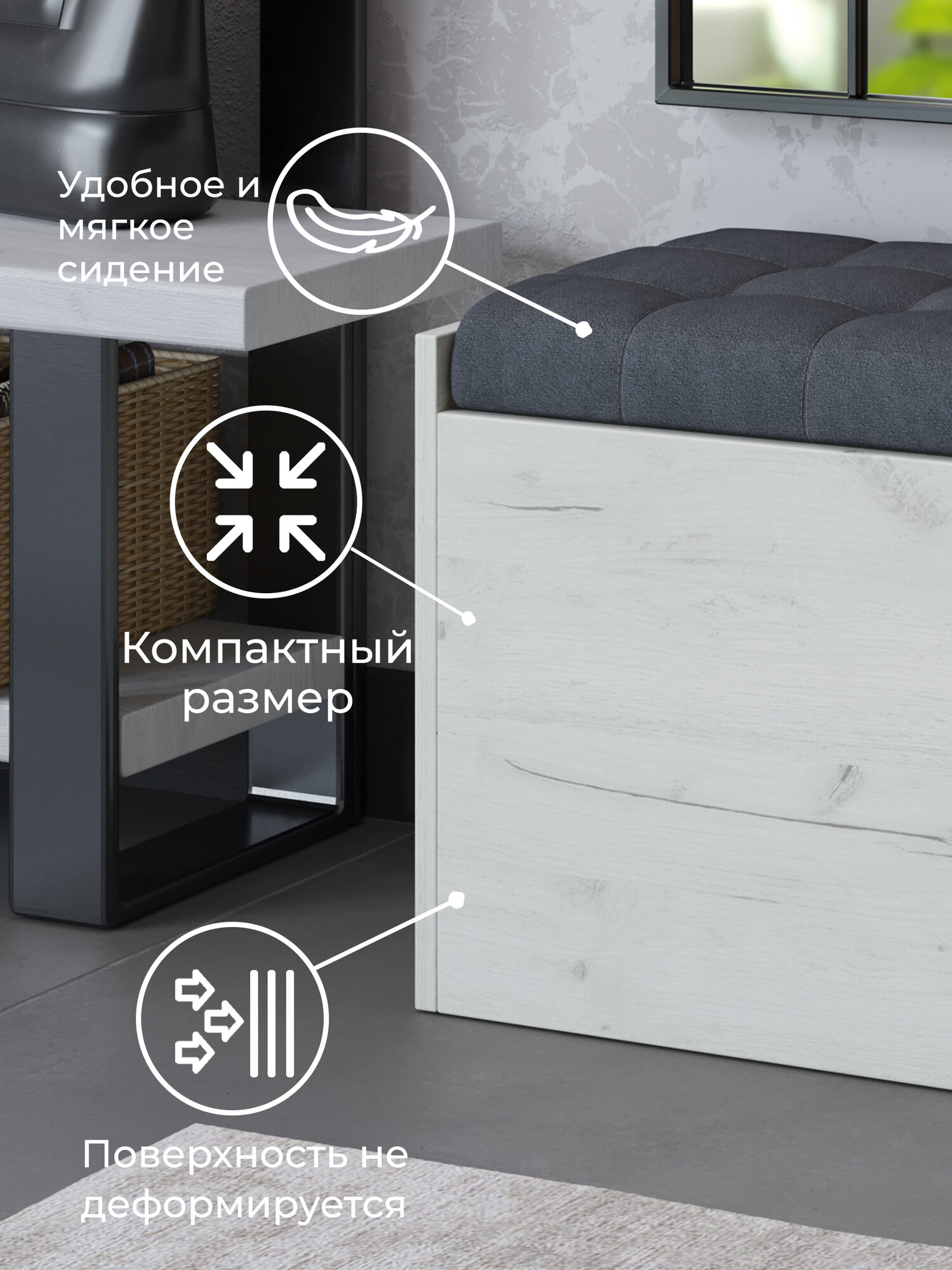 10 цен на Пуф с крышкой, прямоугольный, ТриЯ "Форест", дуб крафт белый/серый