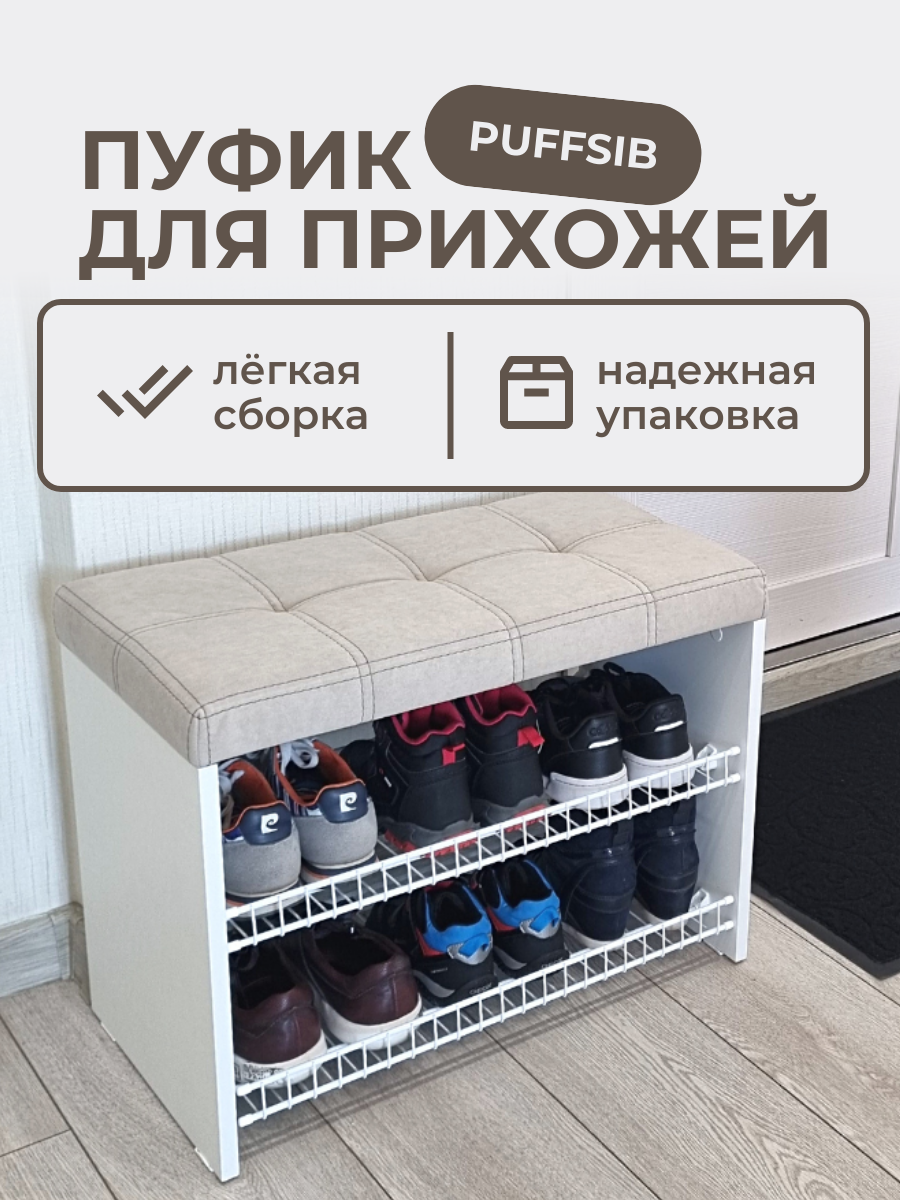 Отзывы на Пуфик в прихожую открытый с обувницей Puffsib А-3, белый/бежевый