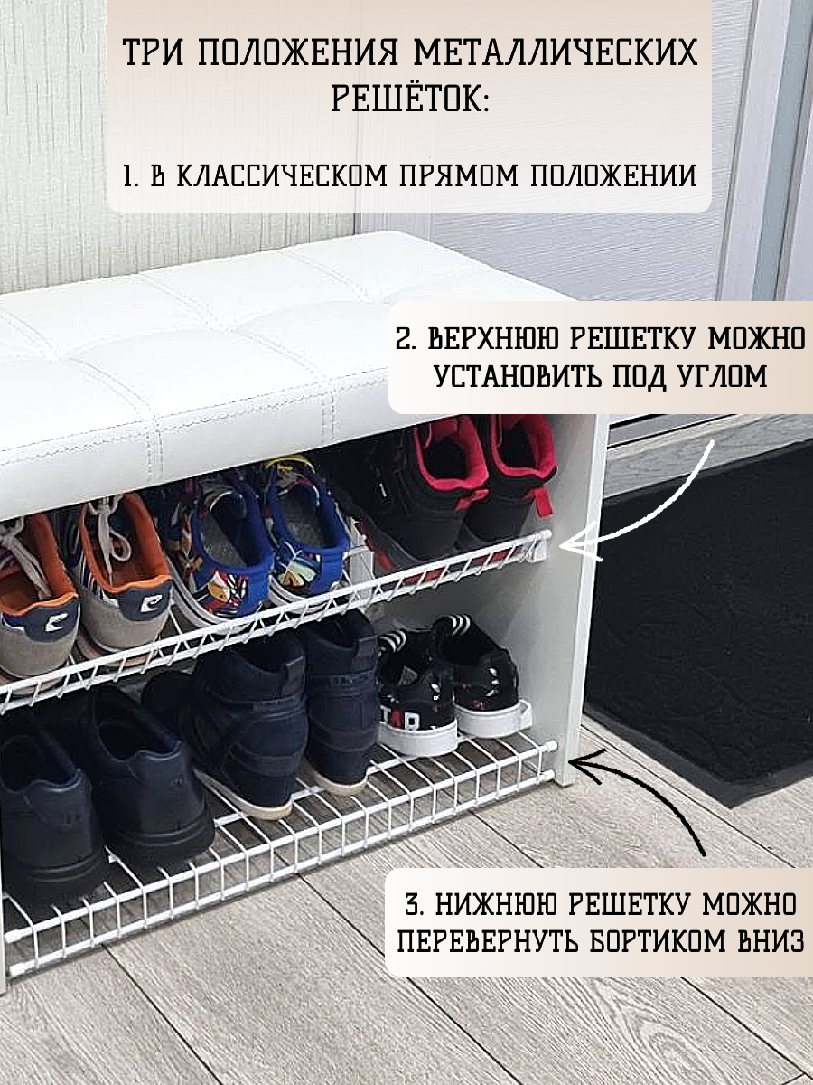 Пуфик в прихожую открытый с обувницей Puffsib А-3, белый информация: