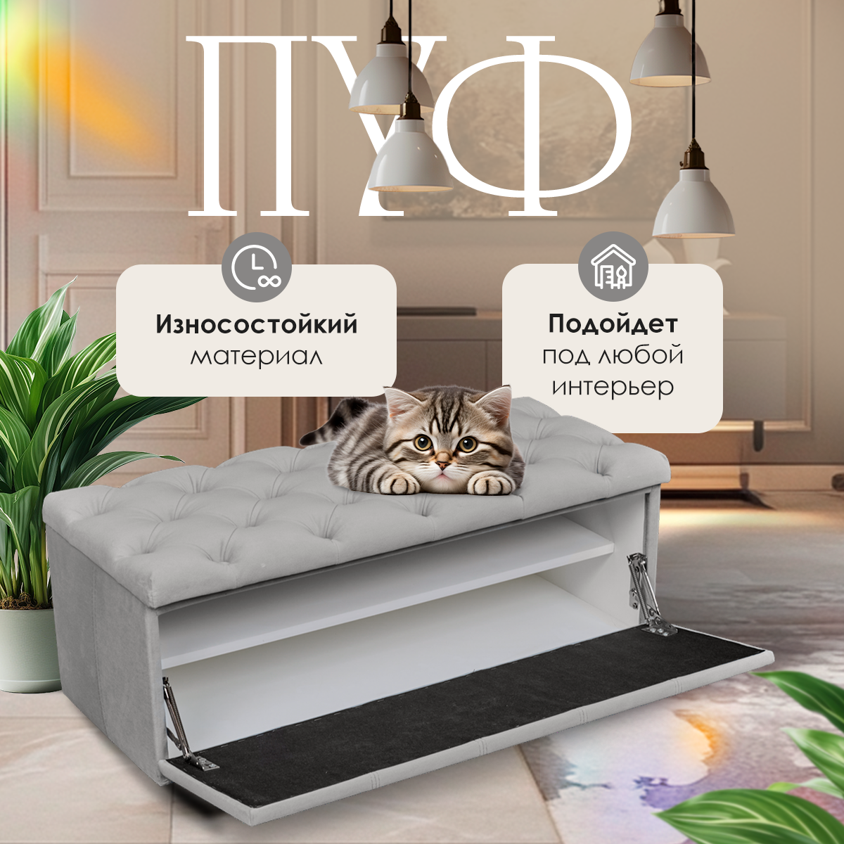 Обувница для прихожей с сиденьем закрытая / Пуф мягкий велюр / Банкетка в прихожую Ультра смок / Серый 89.5*38.5*38 информация: