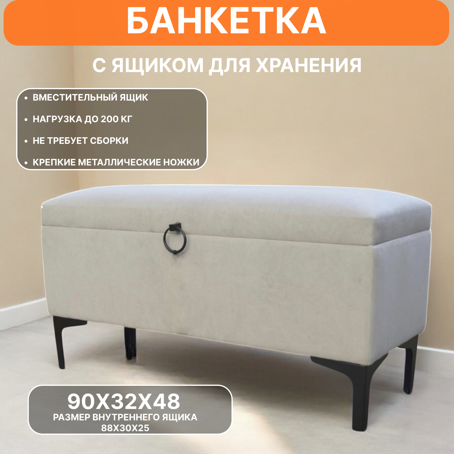 Отзывы на Банкетка из велюра на металлических ножках c ящиком для хранения пуфик в спальню и прихожую серая
