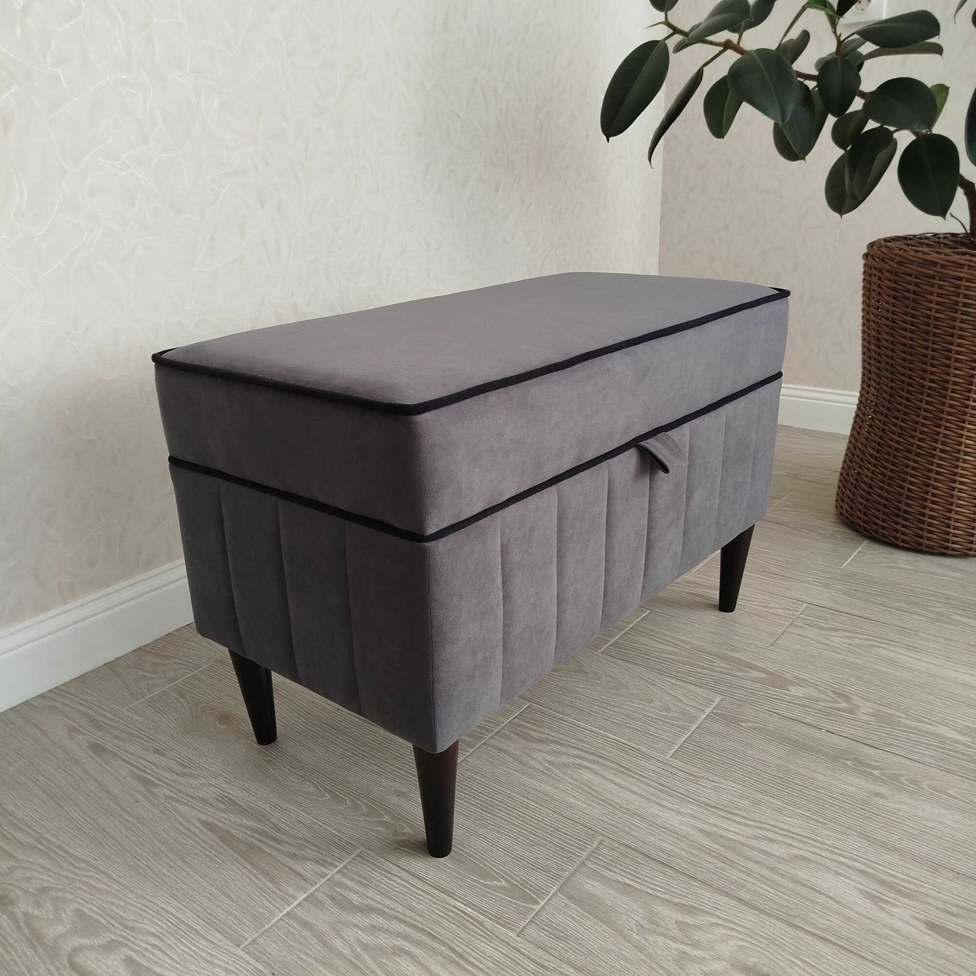 Отзывы на Пуфик в прихожую Вита с ящиком для хранения, банкетка на деревянных ножках, микровелюр, в собранном виде, 71х38х45см, серый графит