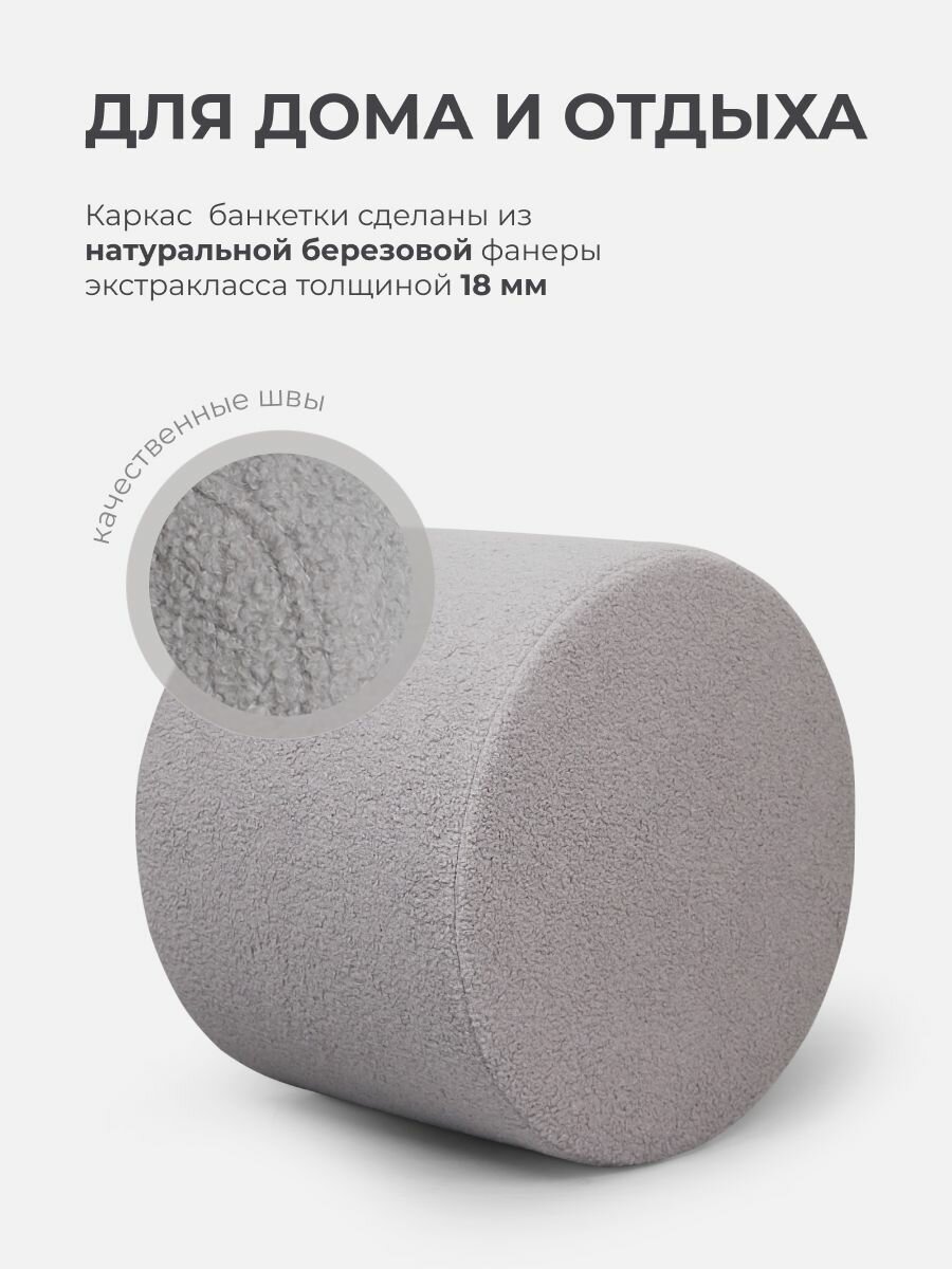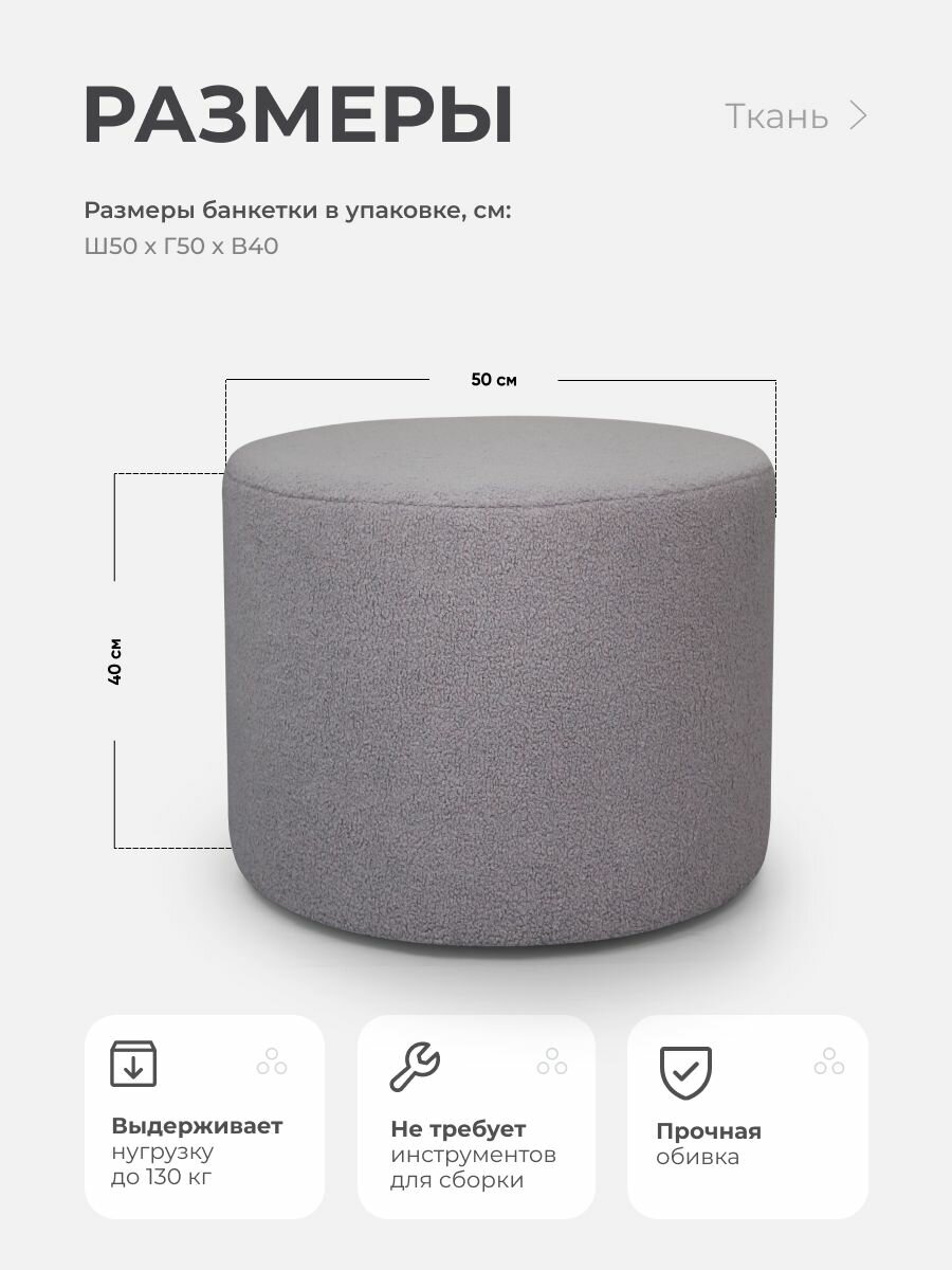 Пуфик круглый в прихожую, для туалетного столика LADY MAY Банкетка 50 х 40 см, Букле информация: