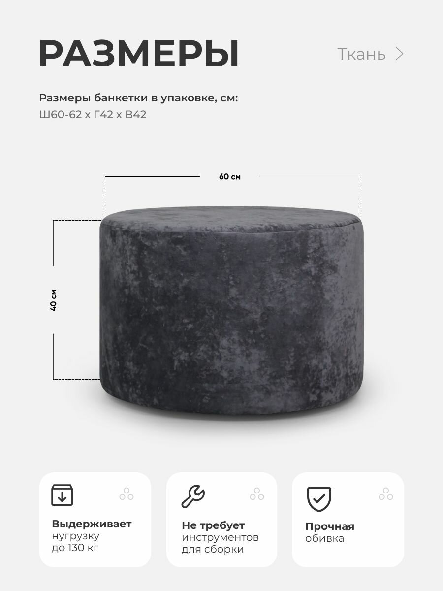 Пуфик круглый в прихожую, для туалетного столика LADY MAY Банкетка 60 х 40 см, Велюр информация:
