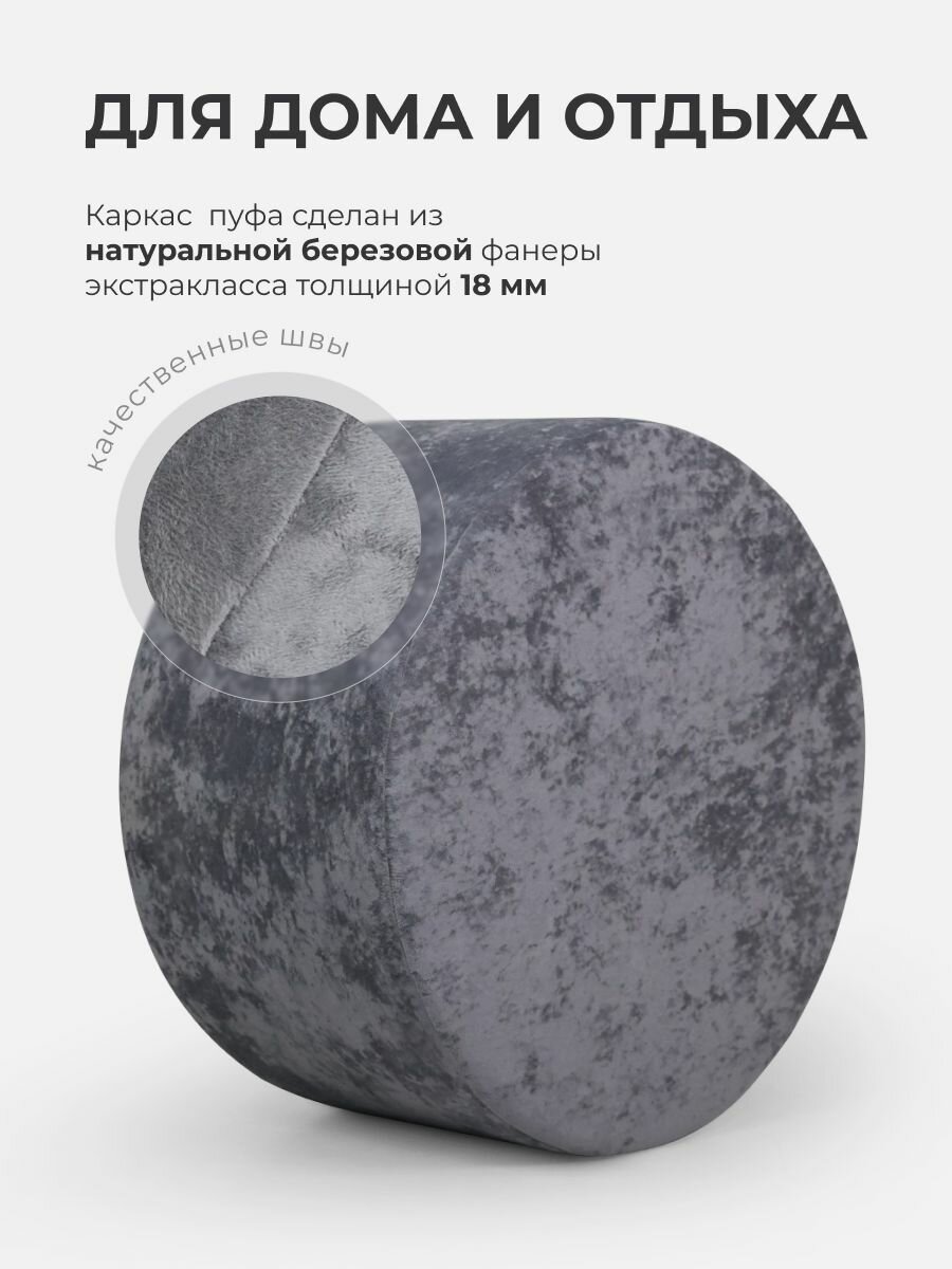 Пуф круглый Элика / пуфик в прихожую, в спальню / велюр / темно-синий