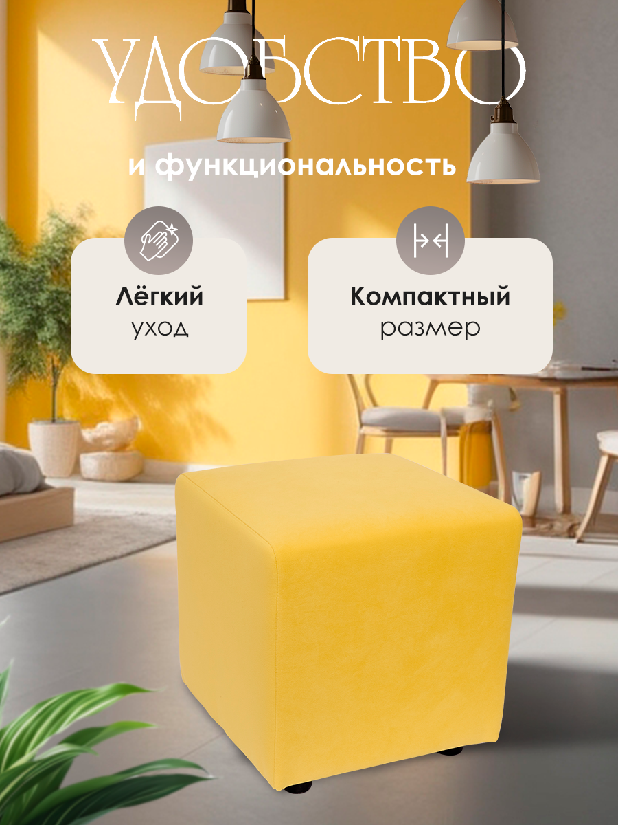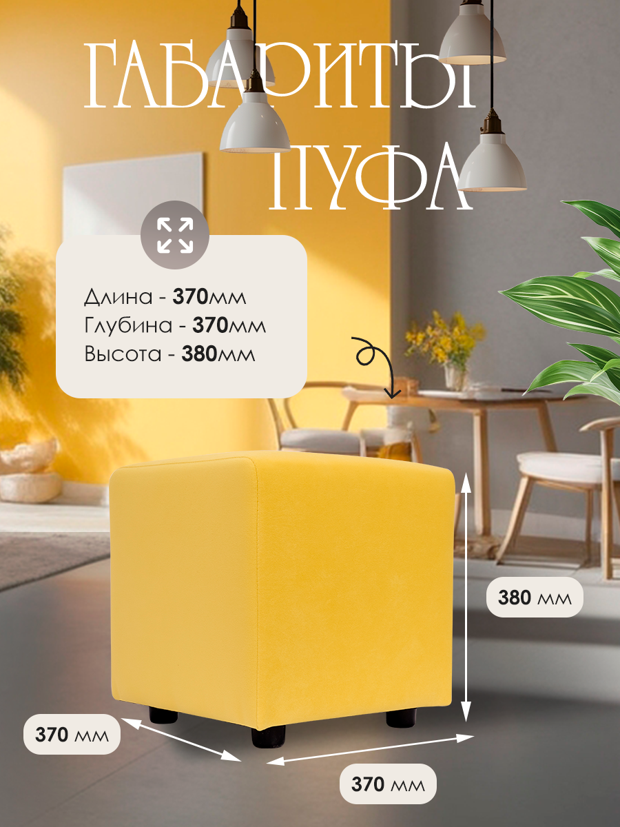 Пуф куб квадратный в прихожую велюр мягкий / Пуфик для туалетного столика Желтый 37*37*38 см информация: